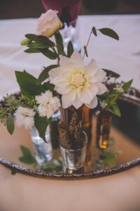 DESCRIBE YOUR WEDDING FLOWERS: They were from Sunborn Gardens! Dahlias were the main. We were open to anything as long as it worked with our color palette. Lisa from Sunborn Gardens was a godsend!