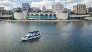 If you are looking for a bit more excitement, enjoy a fun wedding ceremony and reception on the water! Imagine your wedding guests on an open deck, traveling on tranquil waves with the setting sun in the background–a romantic experience for all and perfect for exchanging your marriage vows.