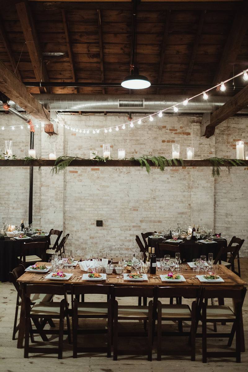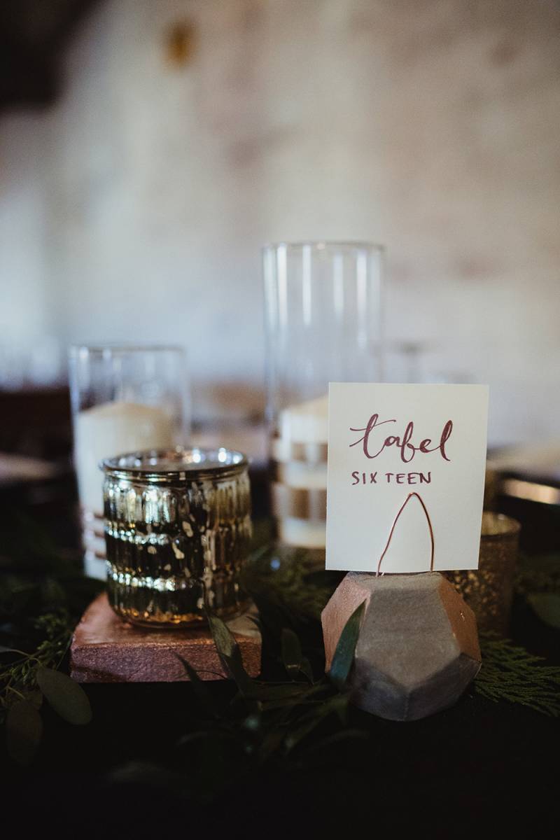 What happens when you combine organic minimalism, textures and metallic tones? This stunning New Year’s Eve affair – that’s what. Held in a gorgeous industrial warehouse with city brick walls at the Lageret, this gallery of pretty images is all captured by Twig & Olive Photography. With unique textures of greenery curated by Flora Designs by Jamae, three wedding gowns, a custom seating chart, and signs made by the bride and groom, this is one wintery candlelit fete I’d raise my hand to attend.