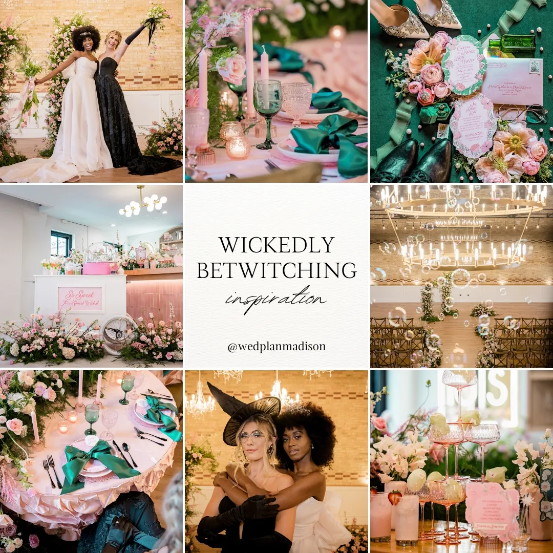 Drawing inspiration from the iconic Wicked musical and its recent movie adaptations, this styled shoot captures the drama, romance, and whimsy of the story in a wedding setting. Playful pinks and greens, layered florals, and cinematic styling create a one-of-a-kind, enchanting experience.