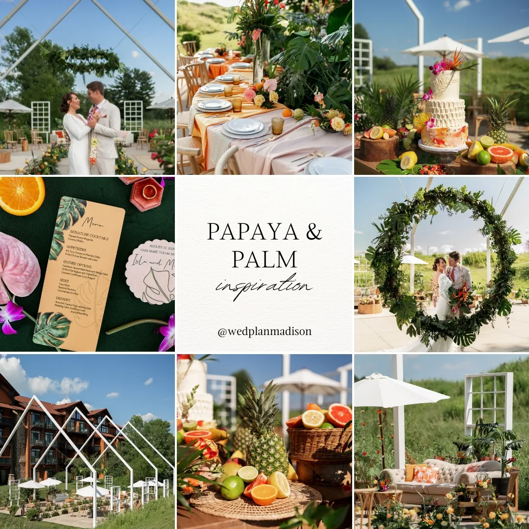 This Papaya & Palm inspiration turns Chula Vista’s Chapel on the Green into a sun-soaked tropical getaway. Lush flowers, playful décor, and vibrant colors create a fresh, romantic celebration full of personality.
