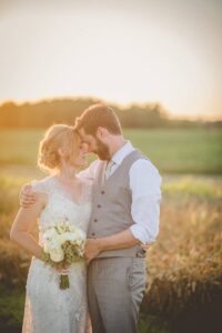 DESCRIBE YOUR WEDDING FLOWERS. Flowers that we had bought and planted with our parents at our homes growing up – in fact, we even used Russian sage that my dad cut from my childhood home and brought to Donna, our wonderful florist. She was very patient and helpful in working with us and what was seasonally available.