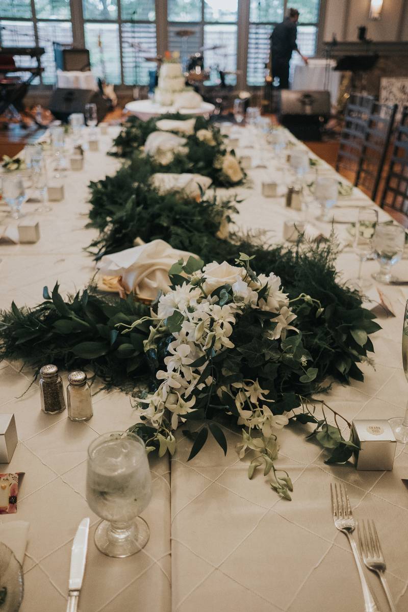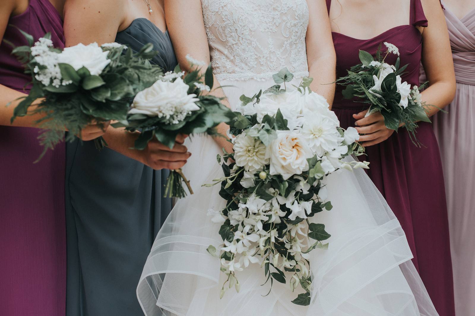 DESCRIBE YOUR WEDDING FLOWERS: We focused mainly on greenery with little pops of white flowers to accentuate the jewel tones of the dresses.
