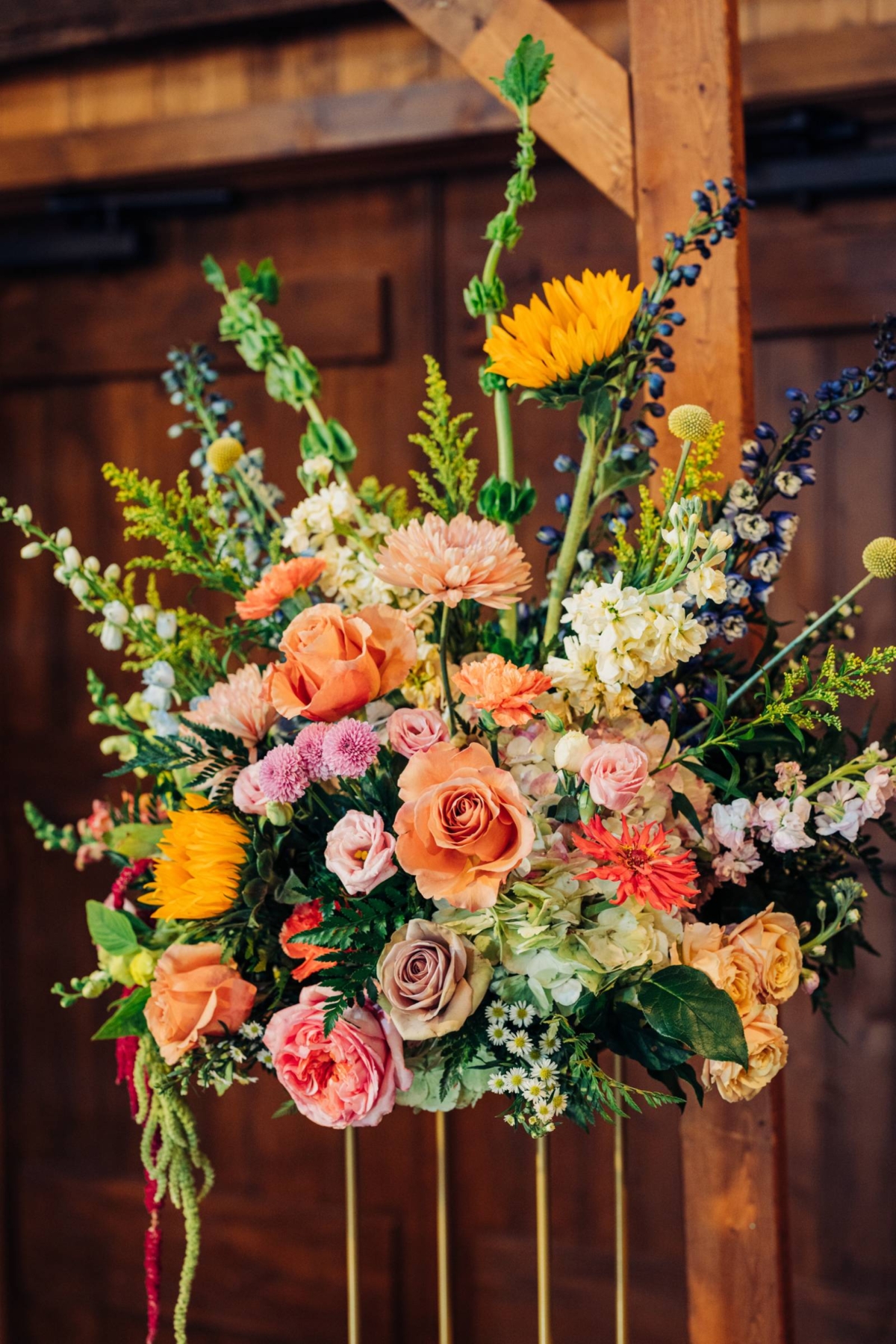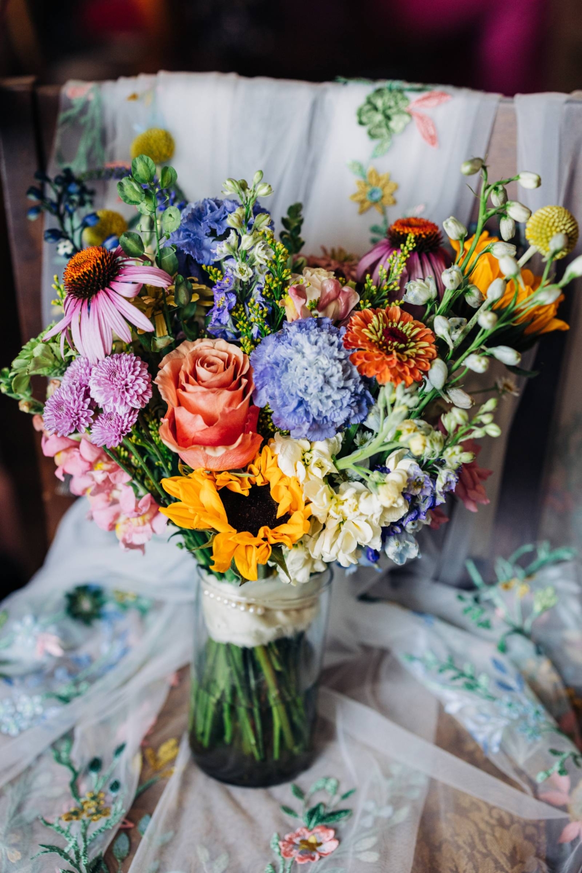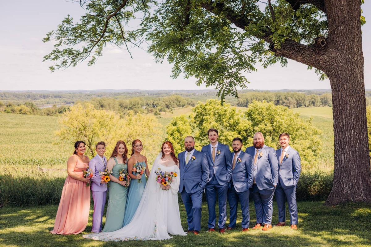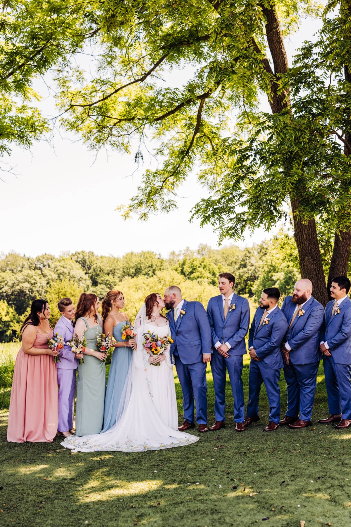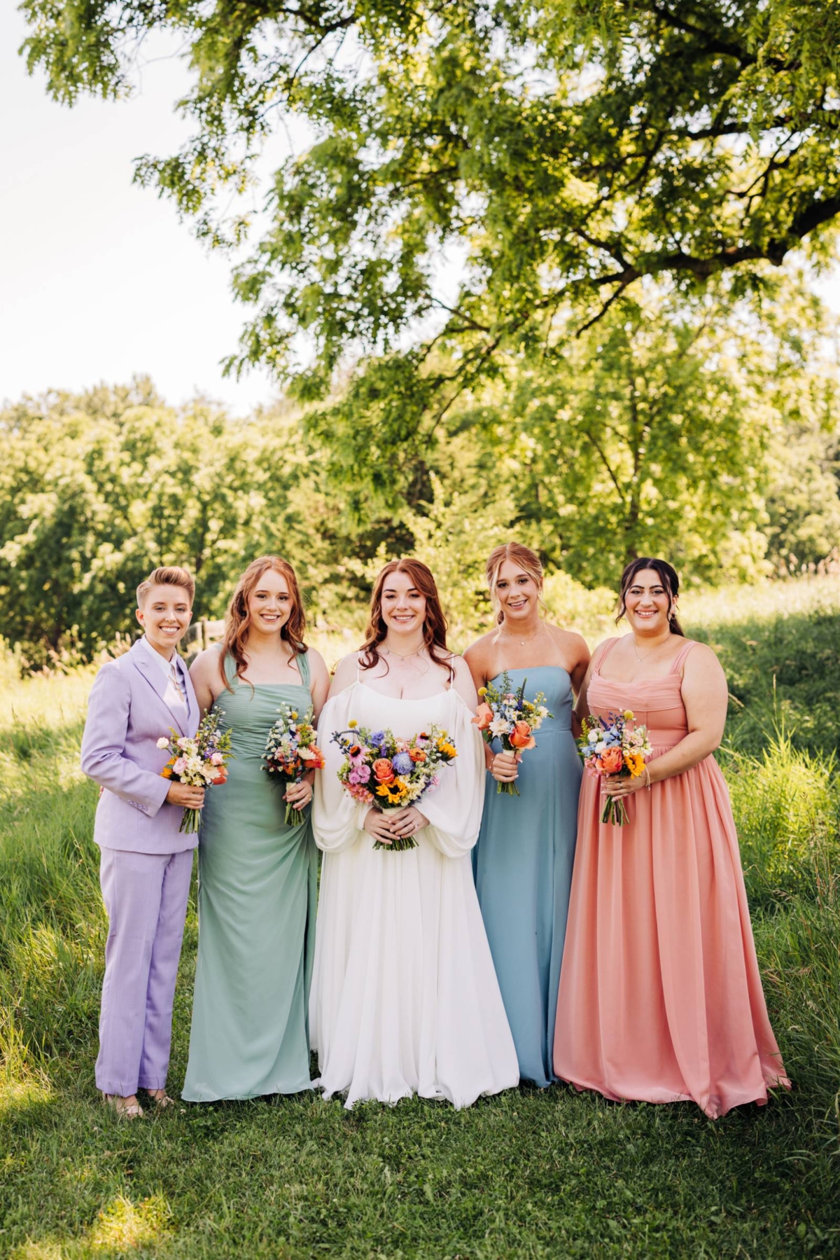 The bridal party wore pastel gowns and formalwear in various colors and styles. Cora’s Creations further extended the color palette by deepening the pastel hues into bolder shades for bouquets, floral arrangements, and décor. Kiley reflected, “The most important thing to me when it came to design was the flowers. Our venue was so beautiful that it really didn’t need décor, but the flowers stole the show.”