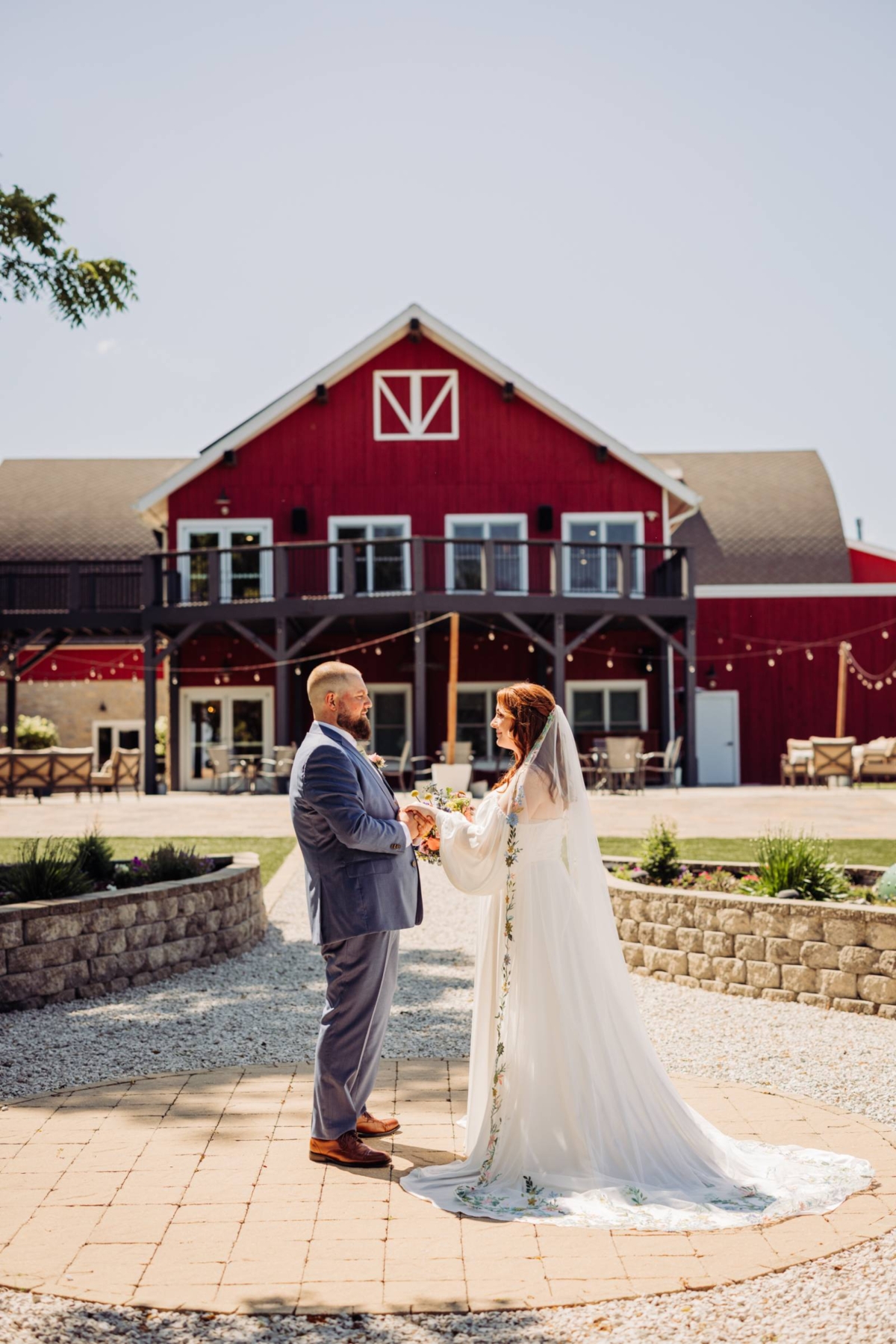 Their perfect venue was Vennebu Hill Event Venue, a charming barn venue located in Baraboo, Wisconsin. Vennebu Hill Event Venue boasts indoor and outdoor ceremony locations, a stunning lean-to reception space, beautiful views, and an outdoor patio.