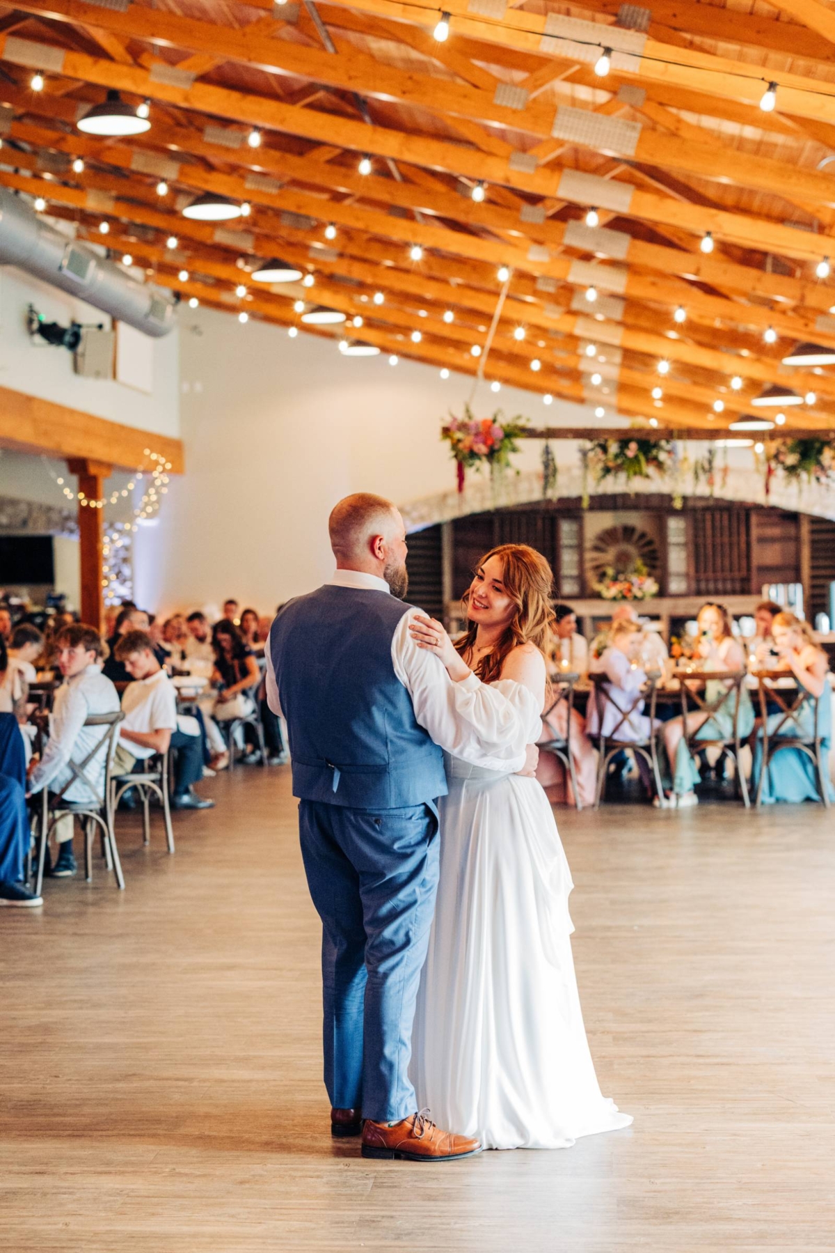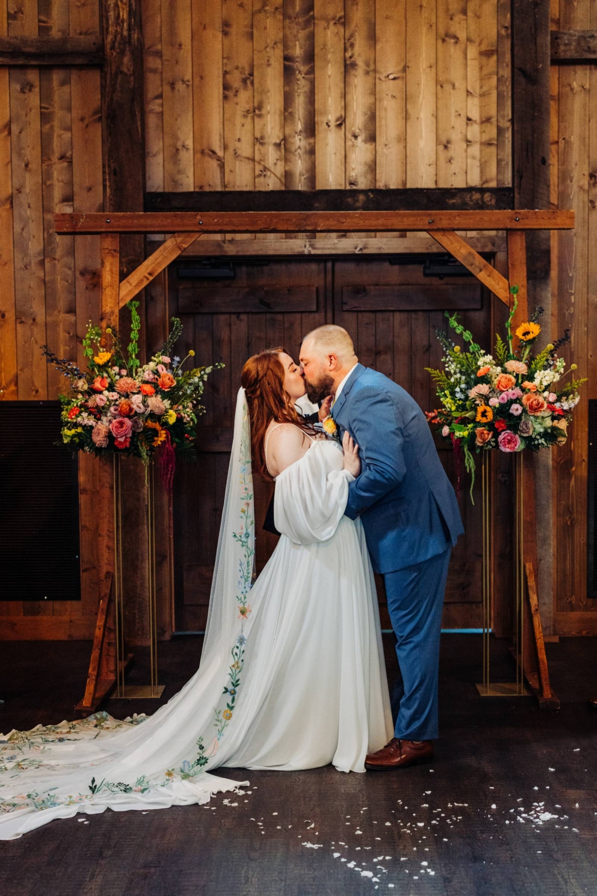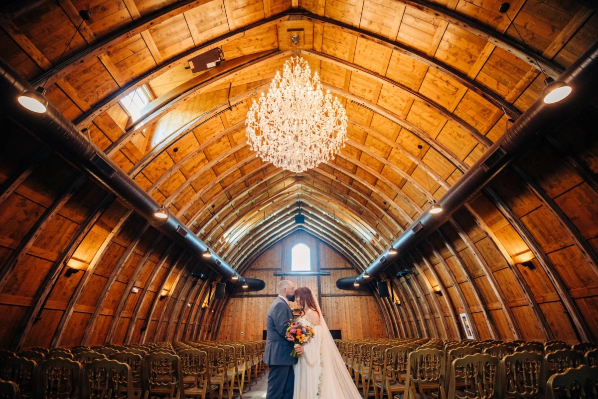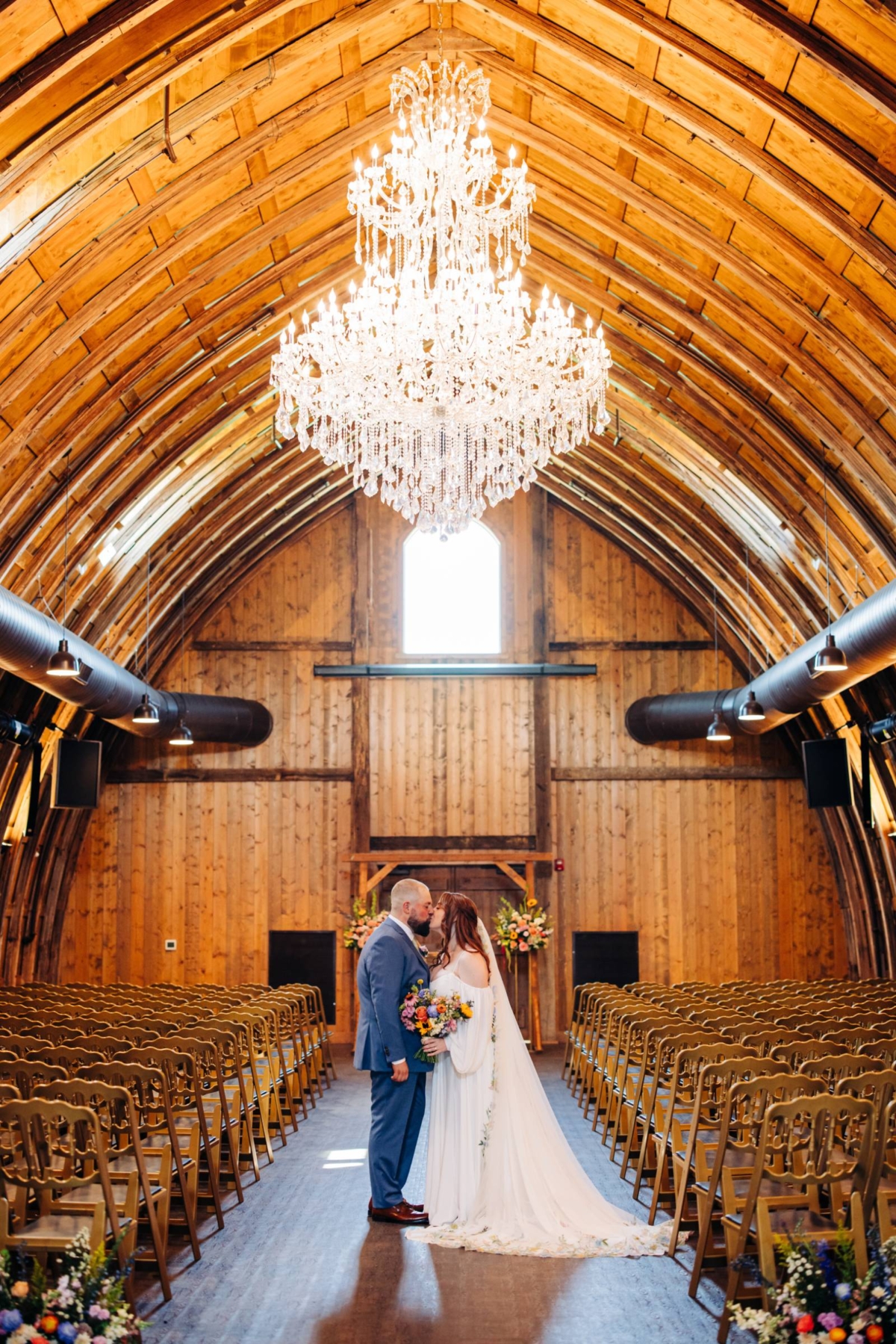 The couple tied the knot inside Vennebu Hill Event Venue’s Gothic barn, beneath vaulted ceilings, a twinkling chandelier, and surrounded by their closest friends and family.