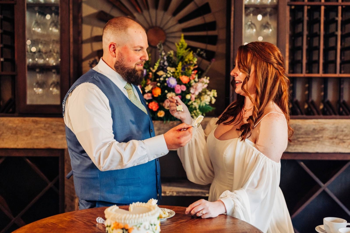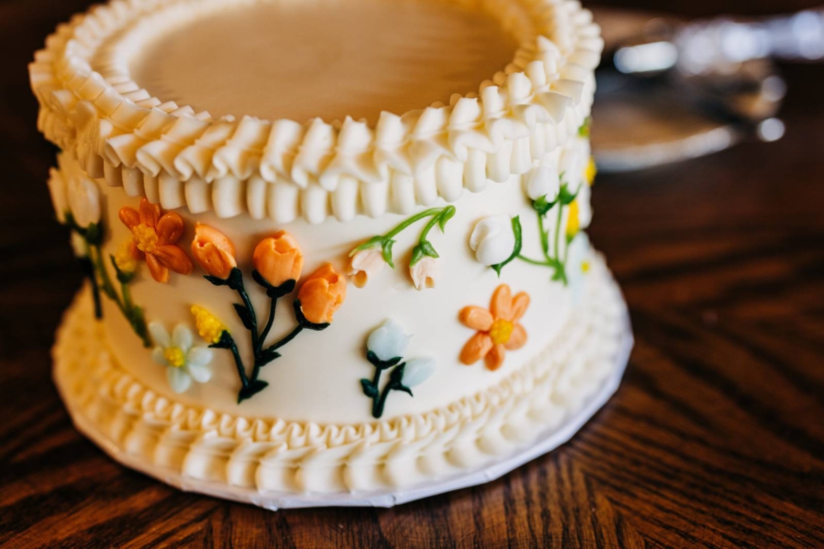 Craig’s Cake Shop provided a charming, single-tiered cake with colorful wildflower detailing. The cake was framed by the venue’s beautifully restored wine cellar and served alongside catering and desserts from Vennebu Hill Event Venue.