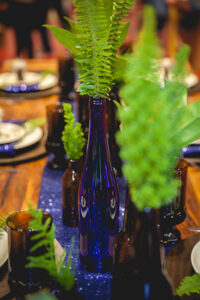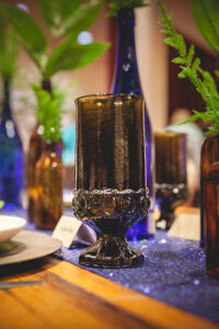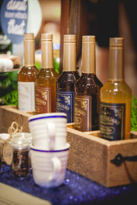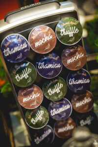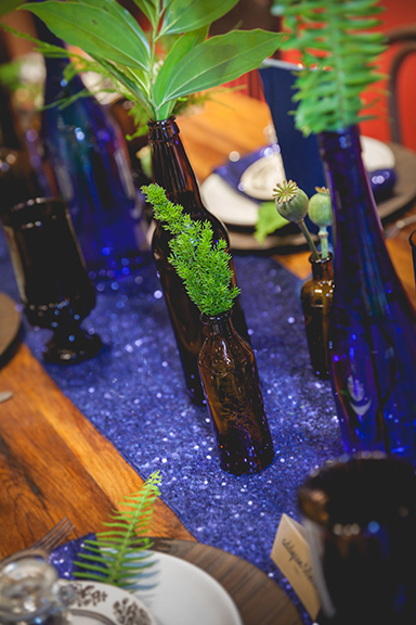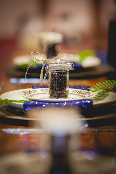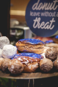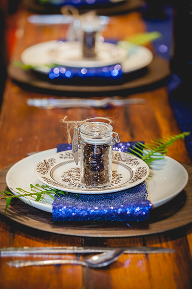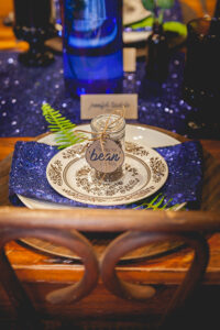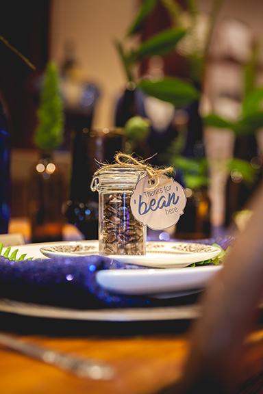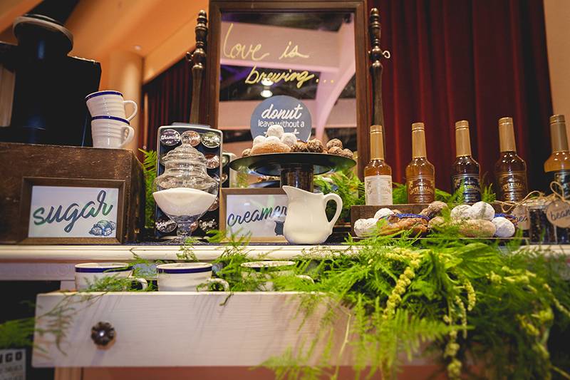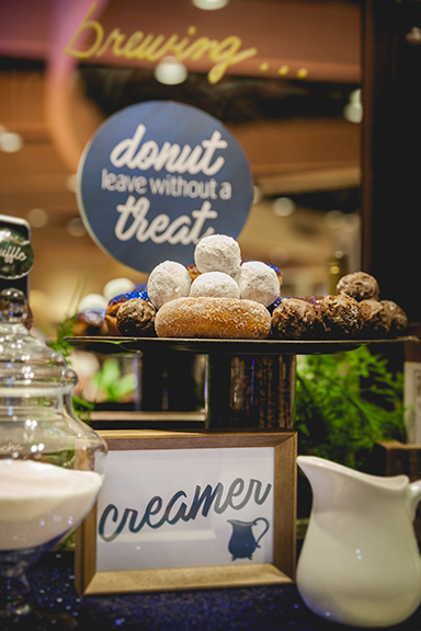 We sure do love the rustic feels with blue hues in this stunning wedding scape at our Spring Wedding Show. Designed by Sarah from Simply Glamorous Designs at Oregon Floral, love certainly was brewing with a donut and coffee bar, coffee bean guest favors and gorgeous paper goods from LK Bridal Studio with accents of lush greenery.