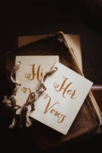 VOWS: These can be traditional or personally written by the couple, depending on your wishes and any restrictions the officiant may have.