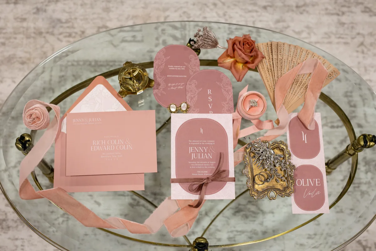 As the title suggests, the “Mauve Manor” wedding inspiration is a celebration of the dusty pink shade, along with coordinating tones of blush, champagne, and burgundy.