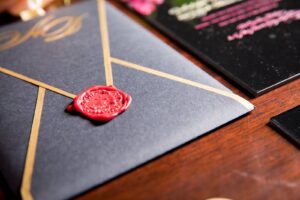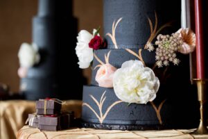 A regal backdrop to a dark and sultry wedding, The Orpheum Theater in Madison, sets the stage for the perfect medieval styled shoot. This history-inspired affair brought to life by Harmonious Union Events, showcases a romantic design, dramatic floral accents and the feeling of passionate love. Chance Productions takes the mood to a more intimate level with climatic lighting. Gilded accents from Event Essentials, a dramatic black wedding cake from Gigi’s Cupcakes, and inspirational acrylic invitations from Sugar Pear Design grace the scene. Enjoy the ambiance of this luxurious affair, captured by Urban Anchor Photography.