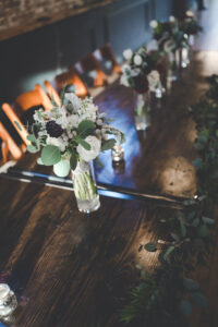 TELL US ABOUT YOUR FLOWERS: We used a lot of greenery. The flowers were ivory, earl grey, and burgundy in color.