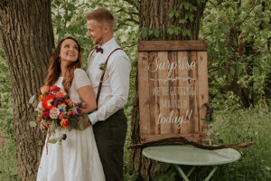 Karly says, “I couldn’t have done it without the hard work from an amazing group of vendors. We came together to create a beautiful Midwest farm wedding. The idea behind the day was that a couple hosts a SURPRISE ELOPEMENT in their backyard. Doesn’t that sound fun?