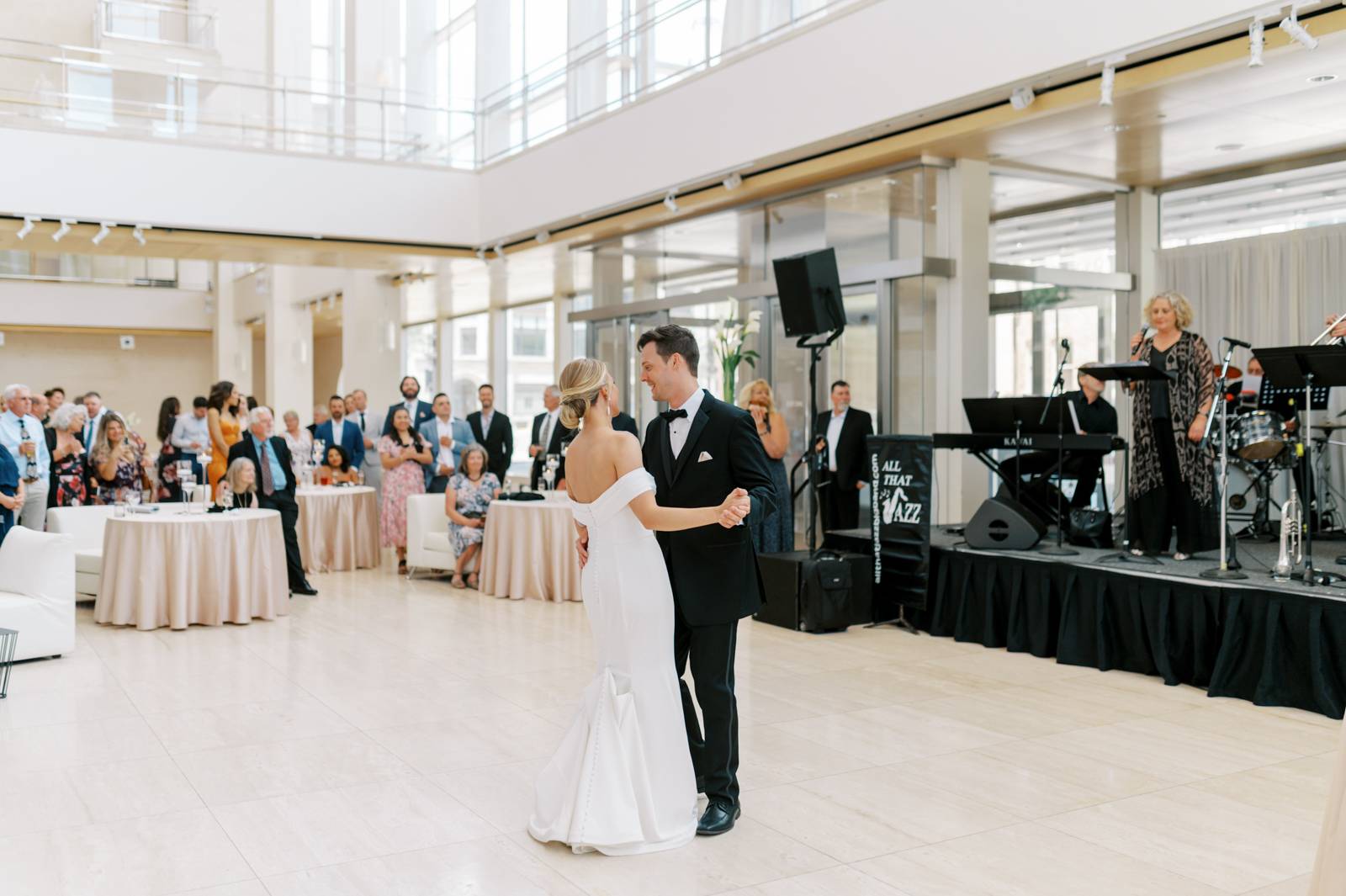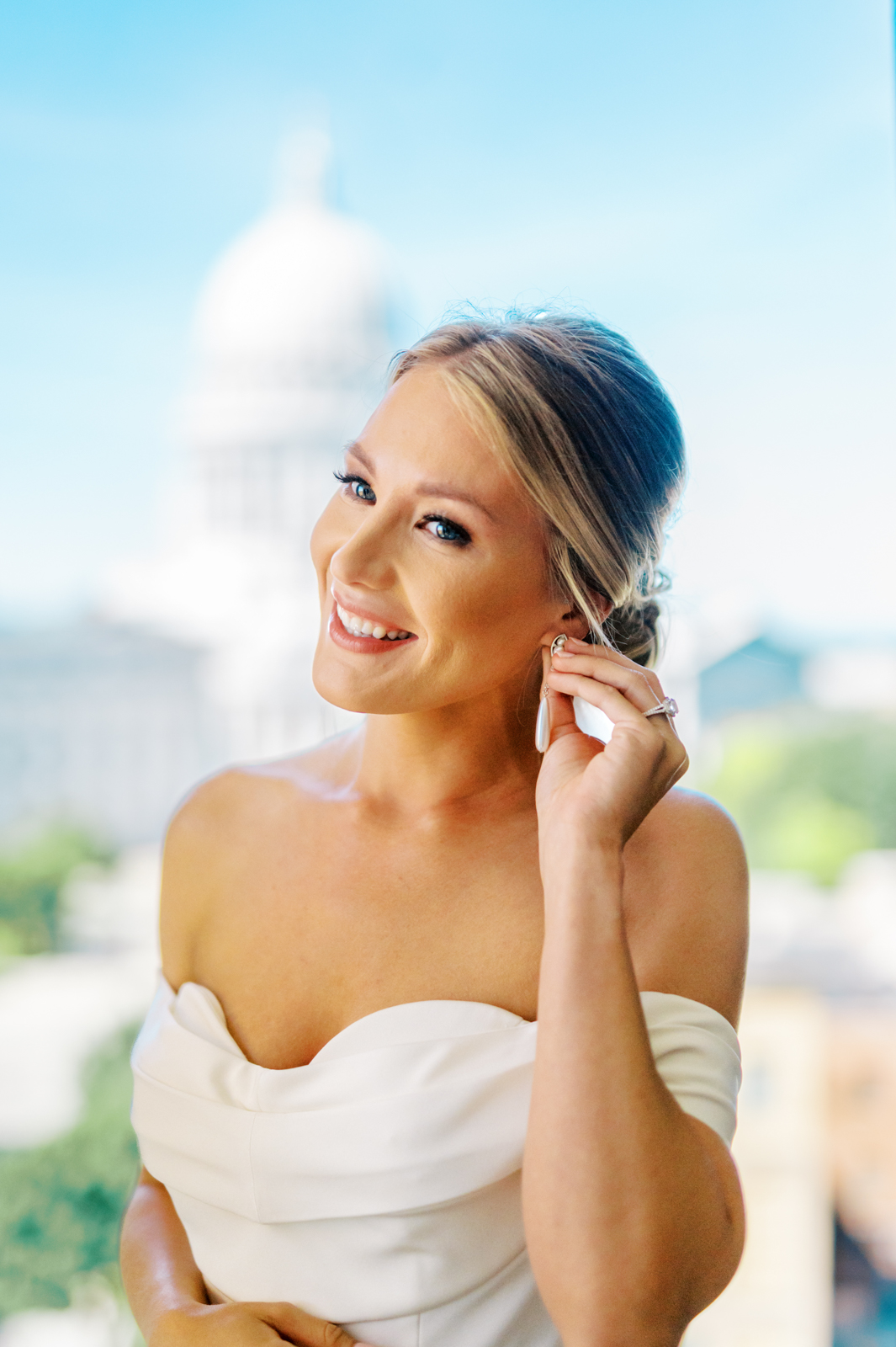 The sleek and contemporary atmosphere of downtown Madison’s Overture Center for the Arts was the perfect backdrop for Kelsey and Sam’s jazzy Sunday brunch wedding. We can’t think of a better combination than marriage and mimosas, can you? This couple planned their special day from afar while living in the sunny state of California taking a handful of trips to Wisconsin to meet with their talented team of local vendors.