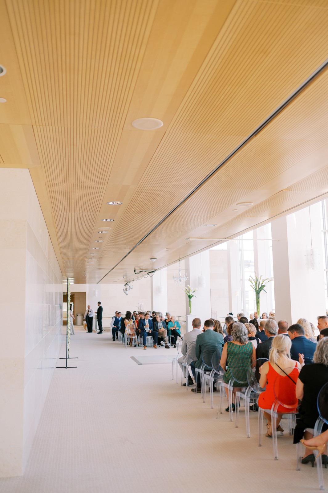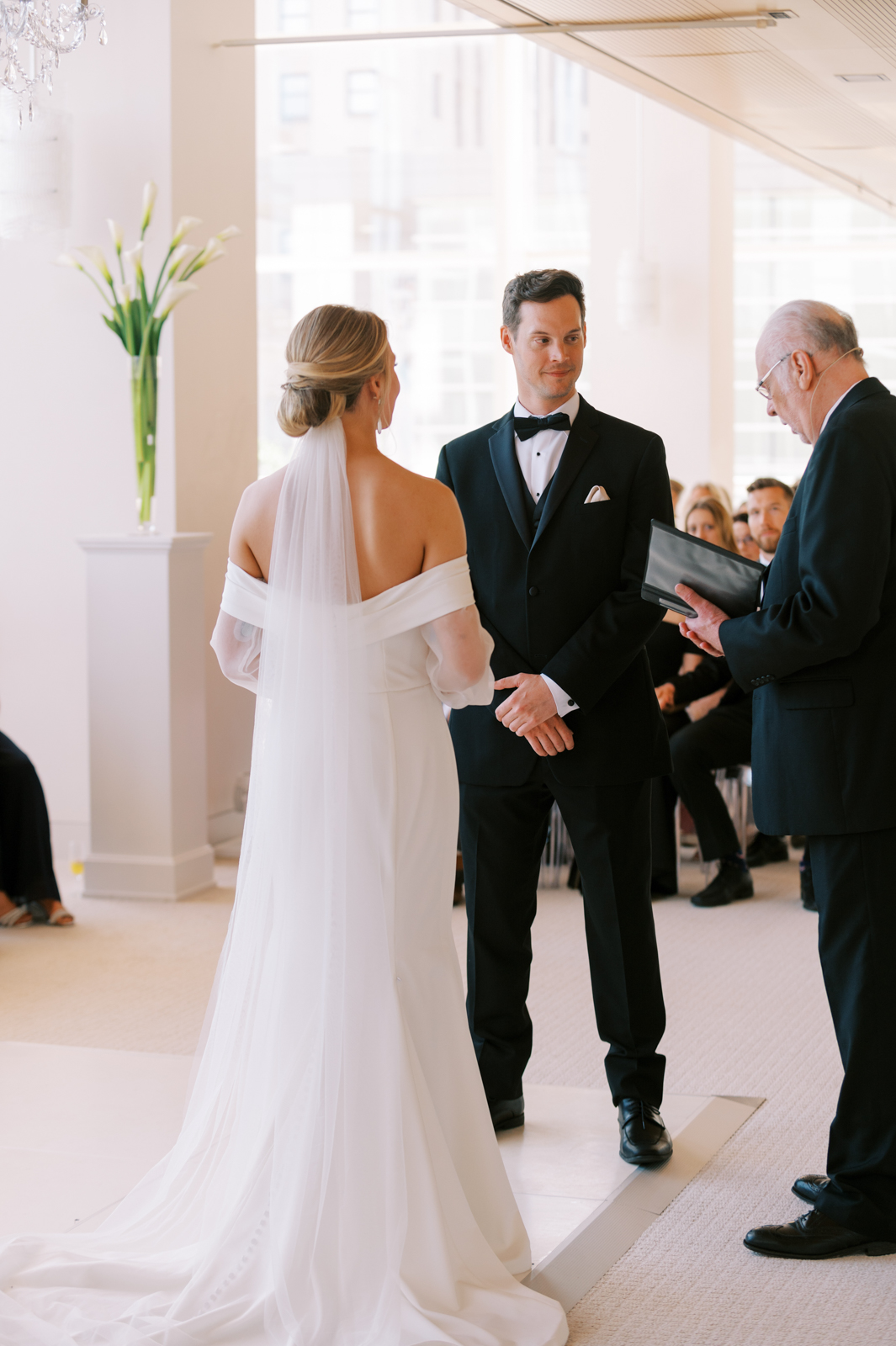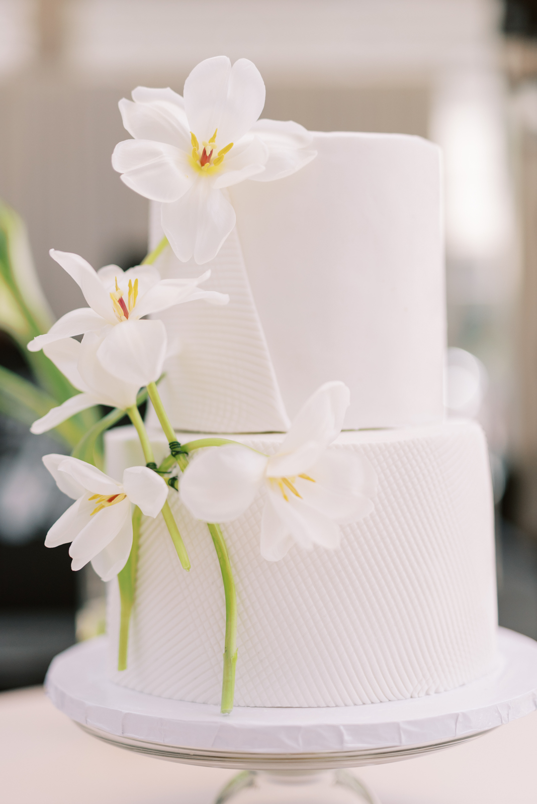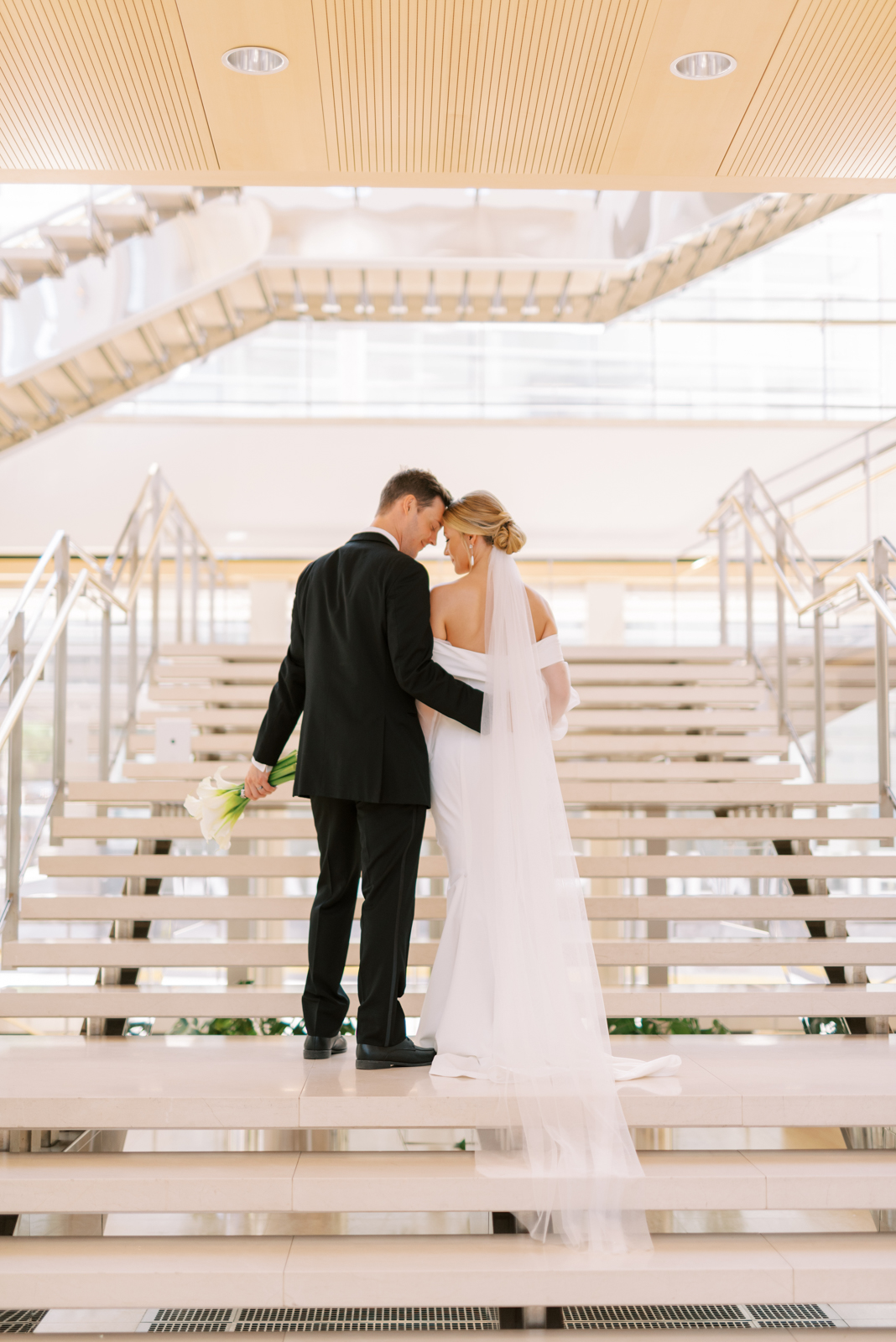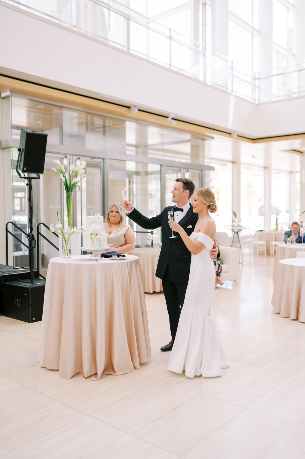 Kelsey and Sam’s minimalist style was nothing short of stunning with each simple yet intentional detail they incorporated like a textured, monochromatic stationery suite and cake, elegant Calla Lily floral arrangements, casual lounge reception seating, and more. With light brunch fare, Bloody Marys, and a live jazz band, enjoy every element of their celebration below.