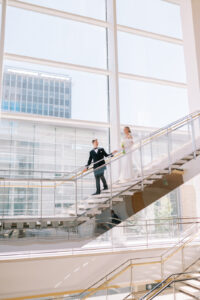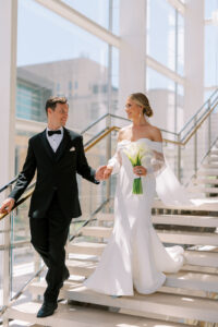 The sleek and contemporary atmosphere of downtown Madison’s Overture Center for the Arts was the perfect backdrop for Kelsey and Sam’s jazzy Sunday brunch wedding. We can’t think of a better combination than marriage and mimosas, can you? This couple planned their special day from afar while living in the sunny state of California taking a handful of trips to Wisconsin to meet with their talented team of local vendors.