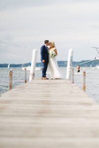 TELL US ABOUT FINDING YOUR DRESS: I anticipated finding a dress on my first outing as I’m not picky and didn’t have my heart set on anything in particular. I flew back to Madison (from Denver) to look with my mom and best friends. We went to several places but I wasn’t sold. I came back out to Denver and went wedding dress shopping several times with friends. I thought I had a winner and had my mom fly out. Still unsure, I came back to Madison to look at my current favorite dress one last time. I was almost out of time and had to make a decision! At Vera’s, I was in the process of getting measured for my top runner but it was so large, they wanted me to try another dress by that designer to be sure on the size. Sure enough, I put that dress on that had everything I had been saying I didn’t want – poofy, sparkles and decided that one was the one! My friends had already left the store and I made them come back to be sure!
