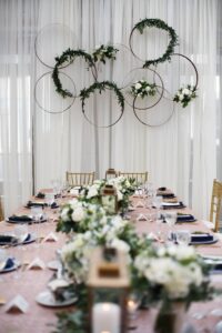 DID YOU USE ANY SPECIALTY LINENS, CHAIRS, TABLES OR DINNERWARE? We had 250 seersucker linen napkins specially made on Etsy. It was a big splurge but really made a difference in the design. We joke that they’ll be family heirlooms for years to come.