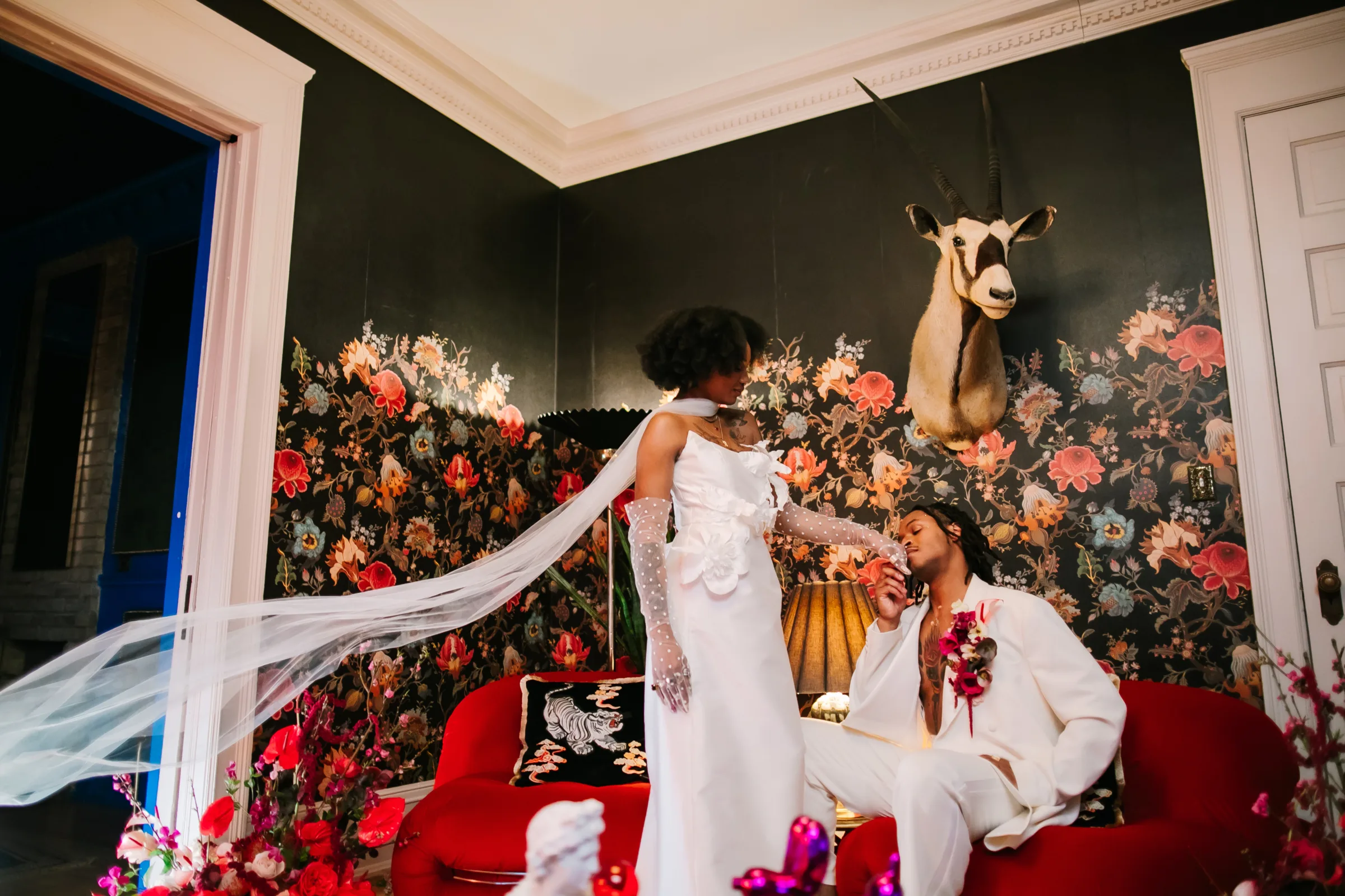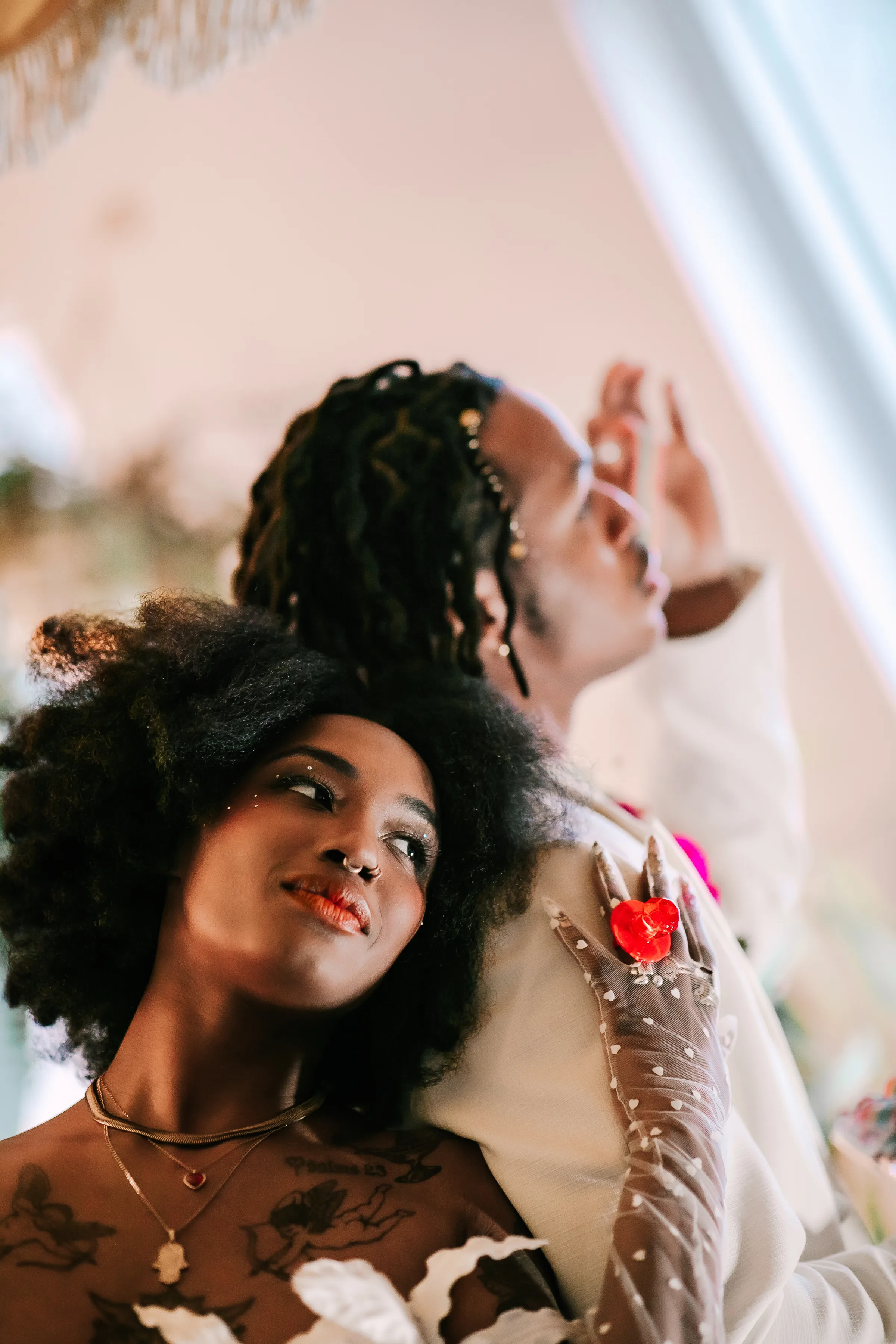 Love is art, and art should honor the depth and beauty of every story. This bold, maximalist editorial celebrates diversity and Black excellence through striking fashion, rich color, and layered, statement-making design. Set against multiple immersive backdrops, each look challenges tradition and embraces authenticity, creativity, and the joy of expressing love without limits.