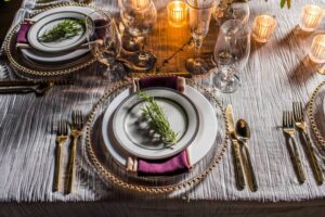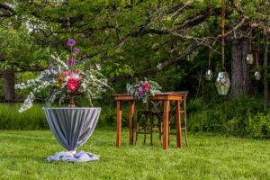 “The overall thought behind the style of the shoot was moody, natural and comfortable. I wanted to be able to share a design that could offer enough elegance and class, but without being stuffy or too over the top. I also wanted it to be more than just the obvious, things like wood tables, chairs and so forth. I didn’t want it to be too easy. So for me, this was mixing in the elements such as linens, chargers and full table settings,” said Korrine.