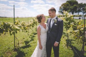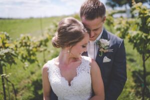 Vineyard weddings sure make our hearts flutter. Why? Because when you combine a day celebrating love AND filled with local Wisconsin made wine, does it get any better? This natural rustic and casual fête at Over the Vines Vineyard & Wine Barn – think a mix of wine barrel cocktail tables, handmade wood planter boxes, all white linen tables and fresh floral pretties by Blooms by Brandi all aglow in a sunny Wisconsin summer day. Luckily for us, East Elm Photography captured the day of the couple’s beautiful outdoor ceremony, indoor barn reception and it’s all right here!
