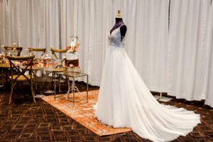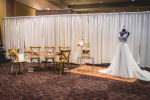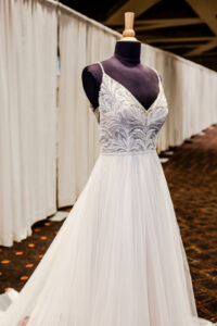 A 40-year+ family-owned bridal boutique located in Reedsburg, Wisconsin, Brides N’ Belles offers small-town service and large town selection when it comes to finding your wedding day attire! We love this romantic a-line gown chosen for today’s scape design.