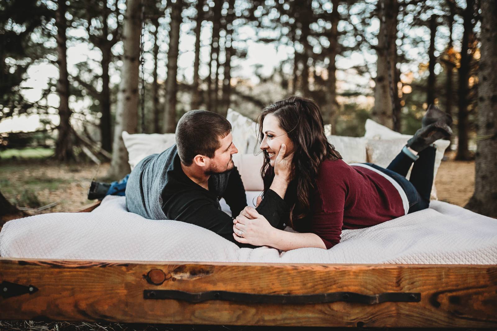 Wisconsin in the fall is pure beauty, so scheduling your engagement photos while everything is in prime color is just a no-brainer. Need proof? Take a look at these beautiful images of Ashley & Ross’s dreamy e-sesh in the woods in golden light from Sisters Essence Photography. They are absolute perfection. Ashley & Ross were the lucky winners of the grand wedding package giveaway at our Wedding Show.