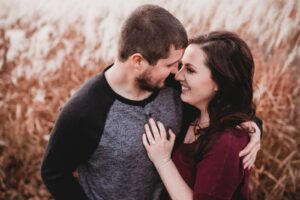 Ashley says, “Going into it, we knew that we wanted to be outside and take advantage of the nice fall weather. Other than that, we just wanted to have fun with the process and wanted to keep an open mind to any ideas our photographers, Joree and Sarah with Sisters Essence Photography, had. We absolutely love the outcome and are so thankful to Joree and Sarah for making the experience what it was!”