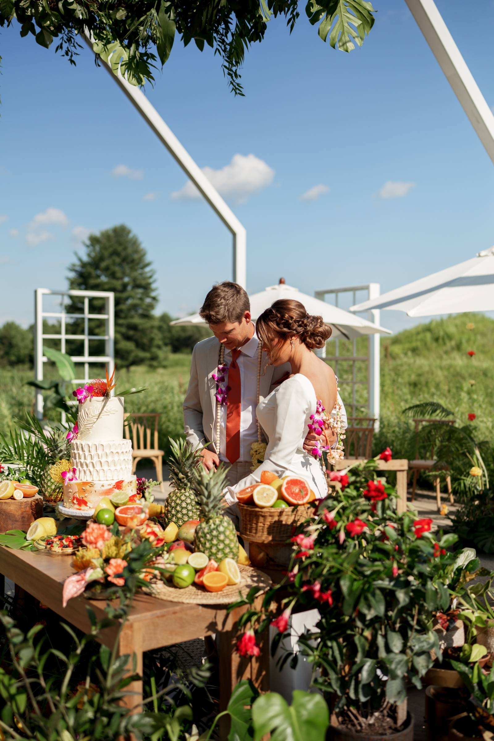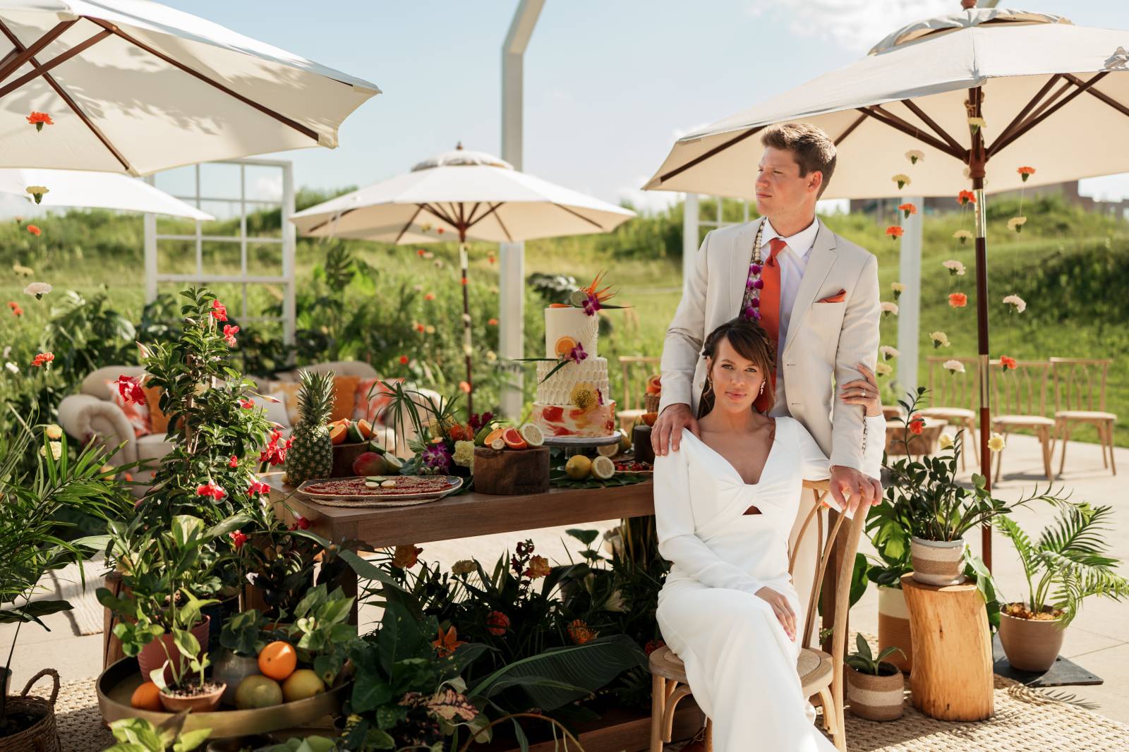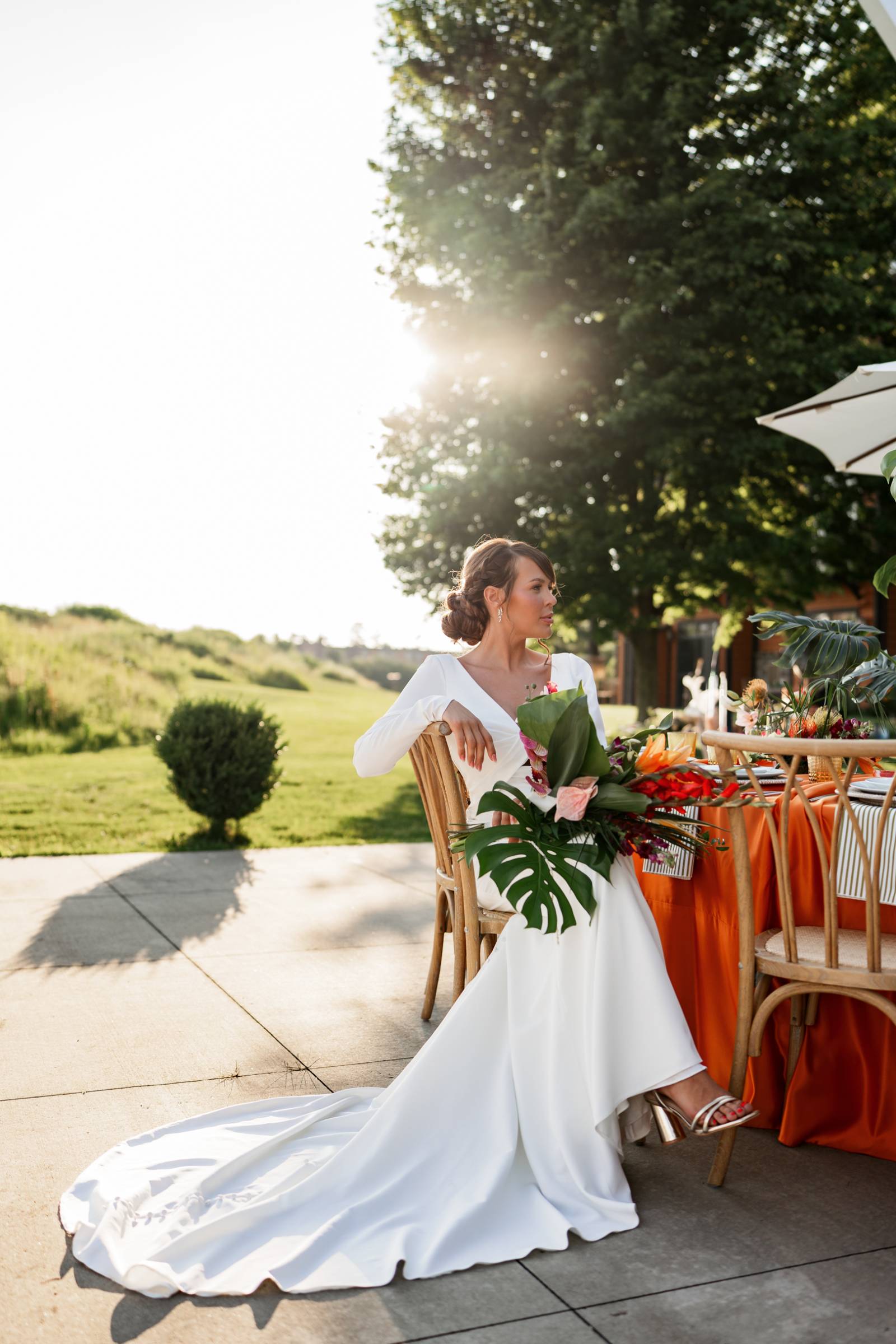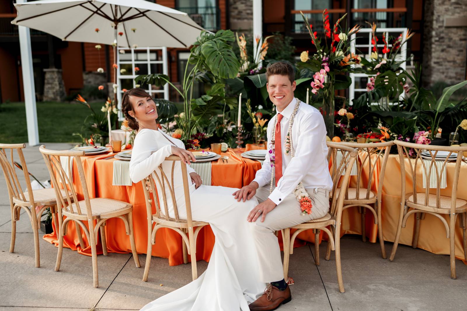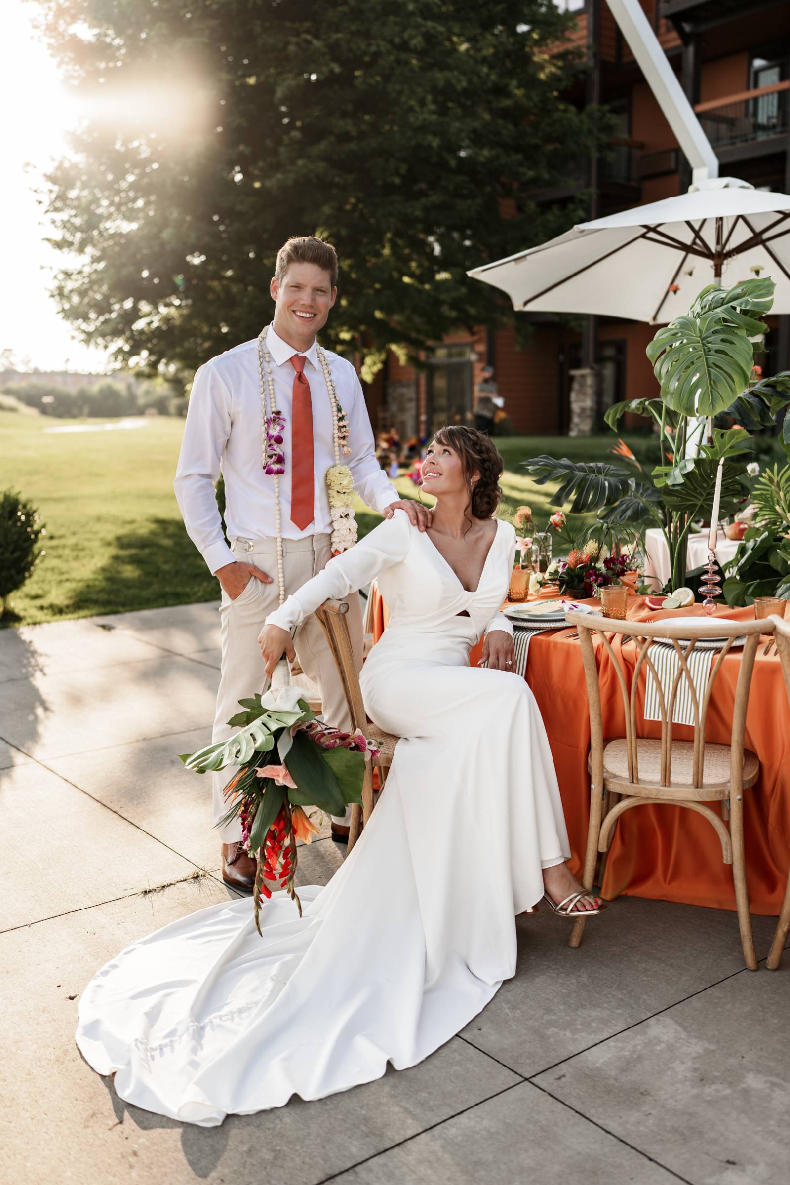 With sunshine spilling across Chula Vista’s Chapel on the Green, and florals bursting in tropical hues, this Papaya & Palm editorial transforms Wisconsin into a destination wedding paradise–no passport required! As a tropical twist on a local celebration, this summery inspiration combines bold color palettes, creative stationery, and lush florals to create a style that feels fresh and joyfully romantic.