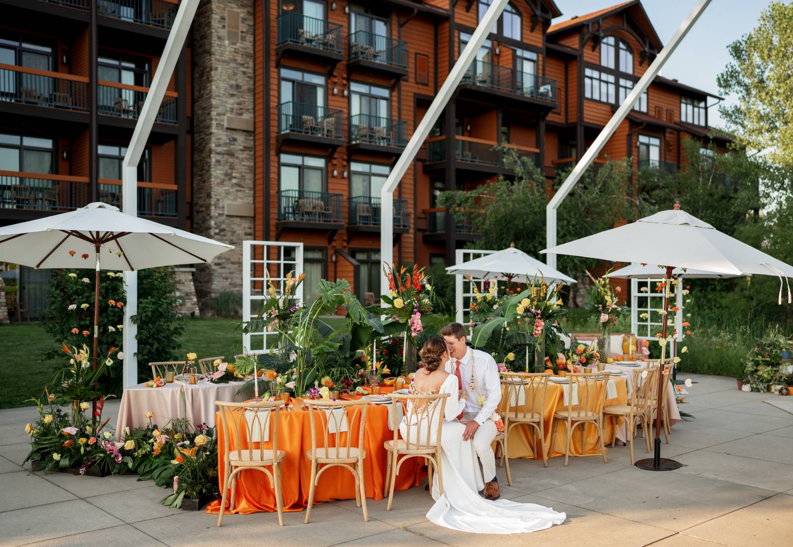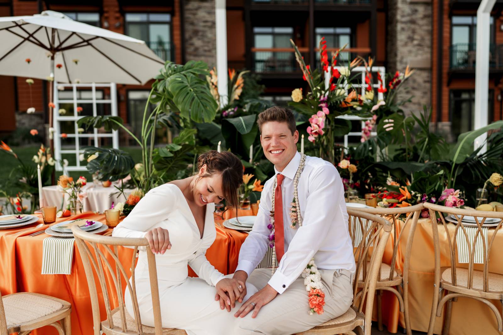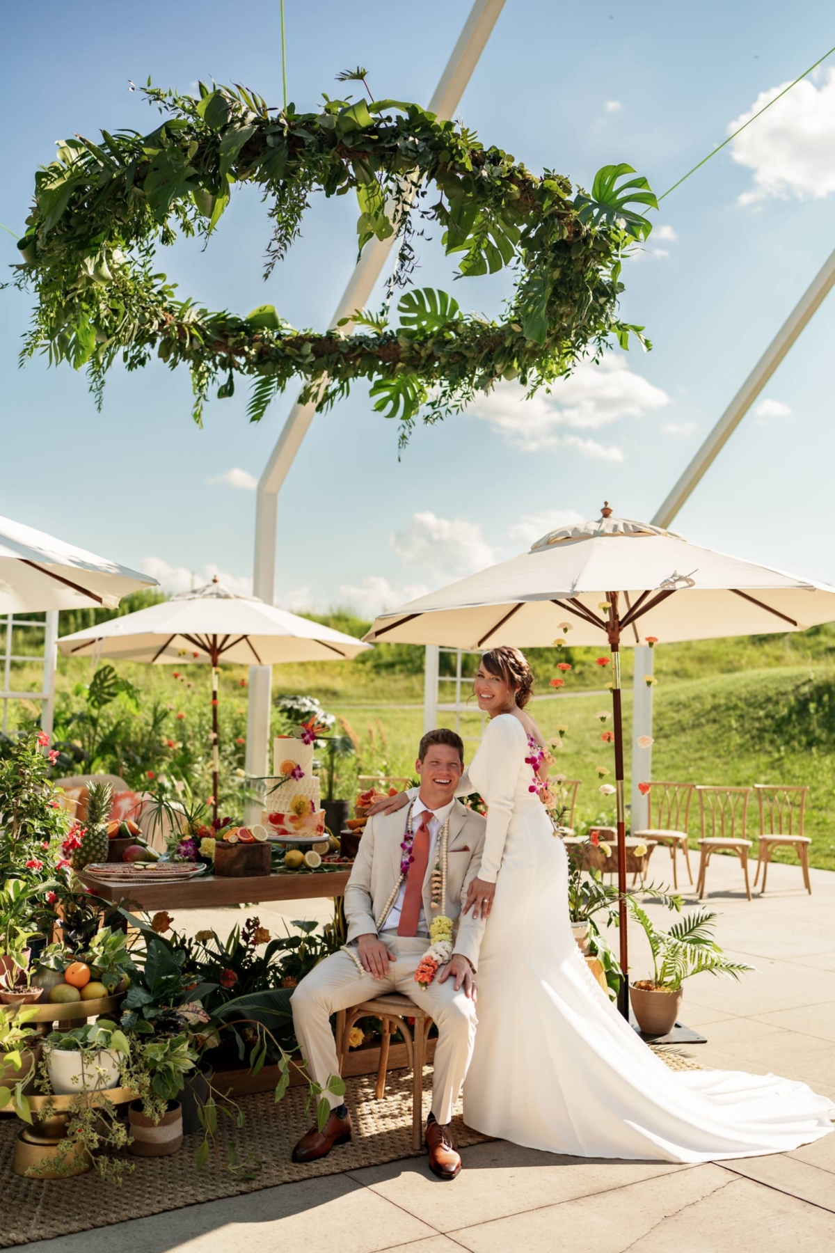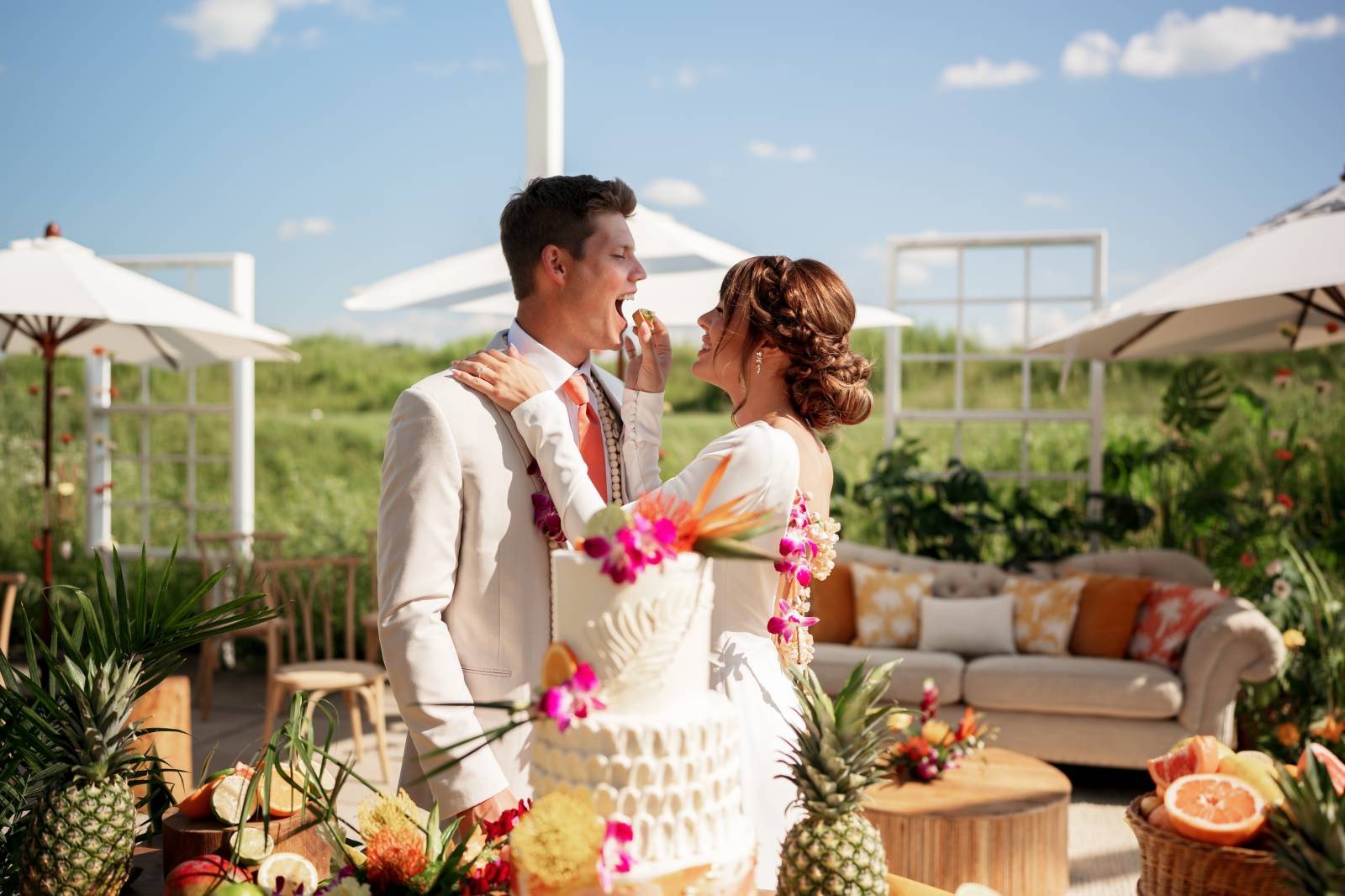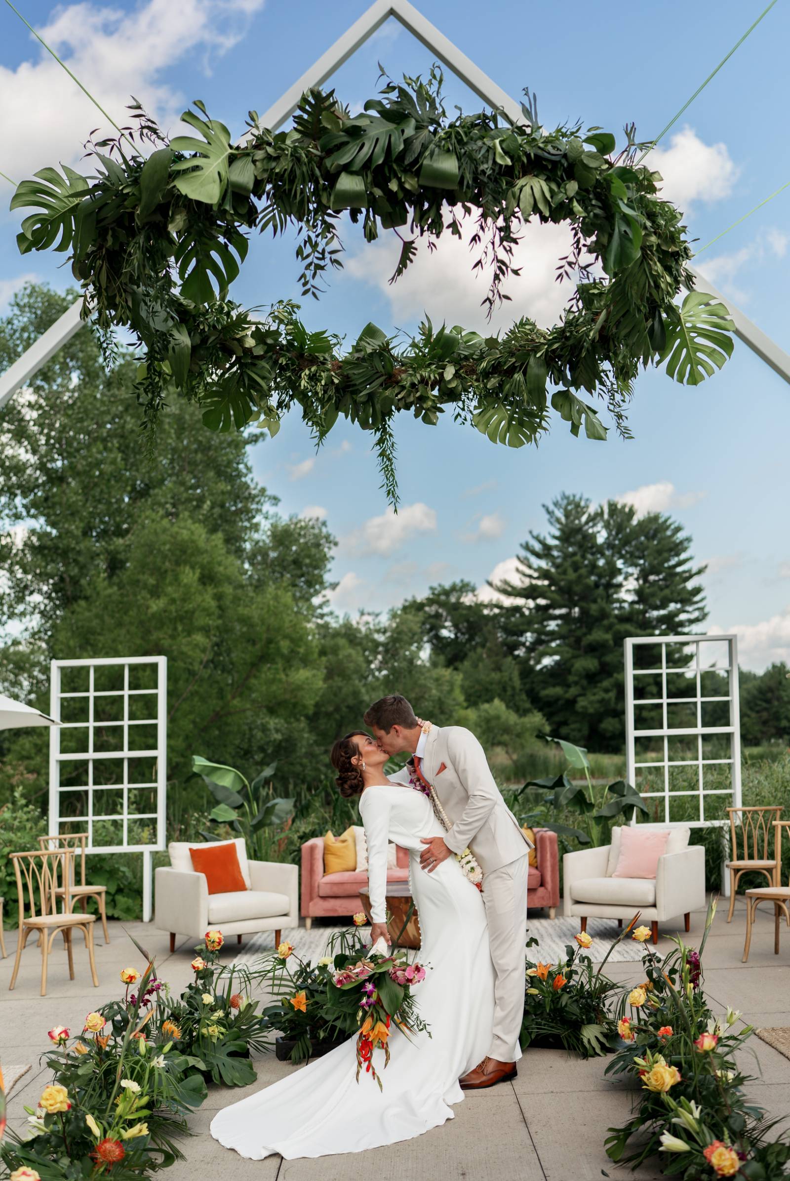 With sunshine spilling across Chula Vista’s Chapel on the Green, and florals bursting in tropical hues, this Papaya & Palm editorial transforms Wisconsin into a destination wedding paradise–no passport required! As a tropical twist on a local celebration, this summery inspiration combines bold color palettes, creative stationery, and lush florals to create a style that feels fresh and joyfully romantic.
