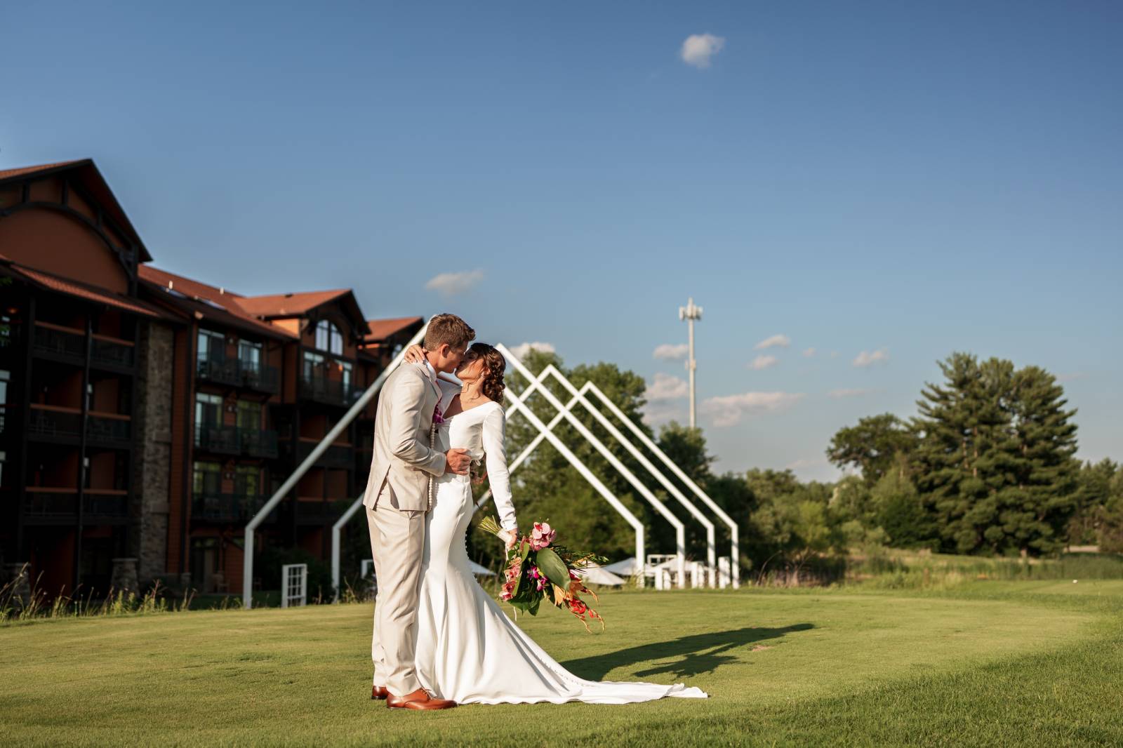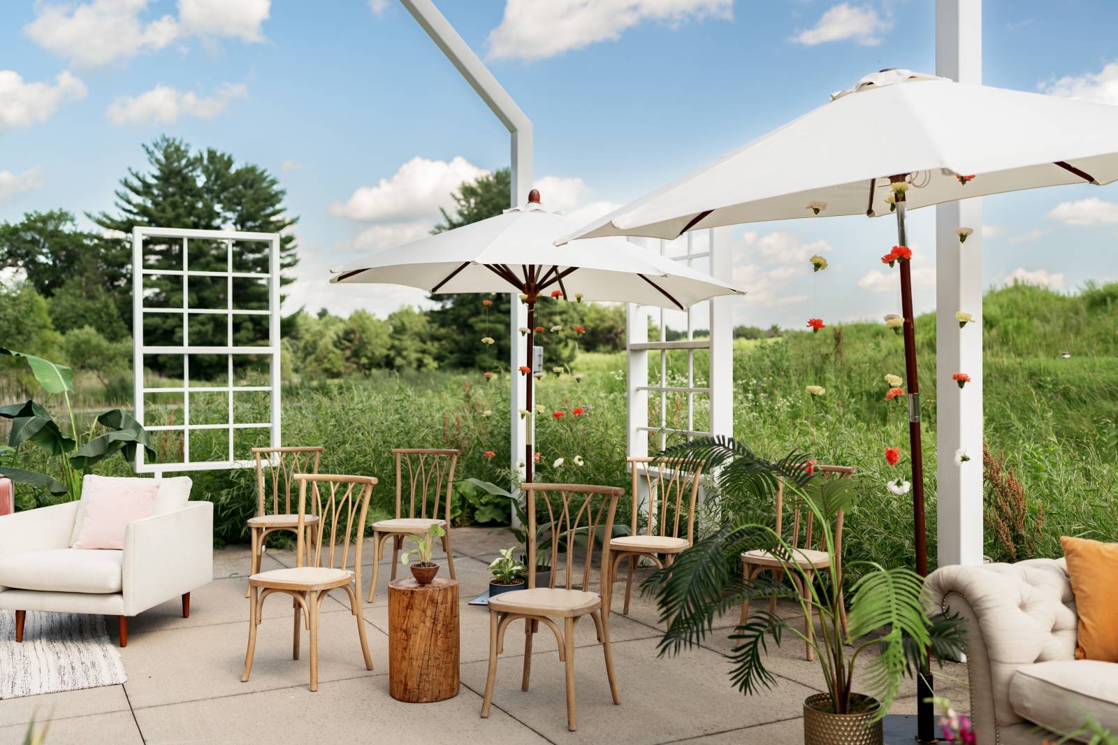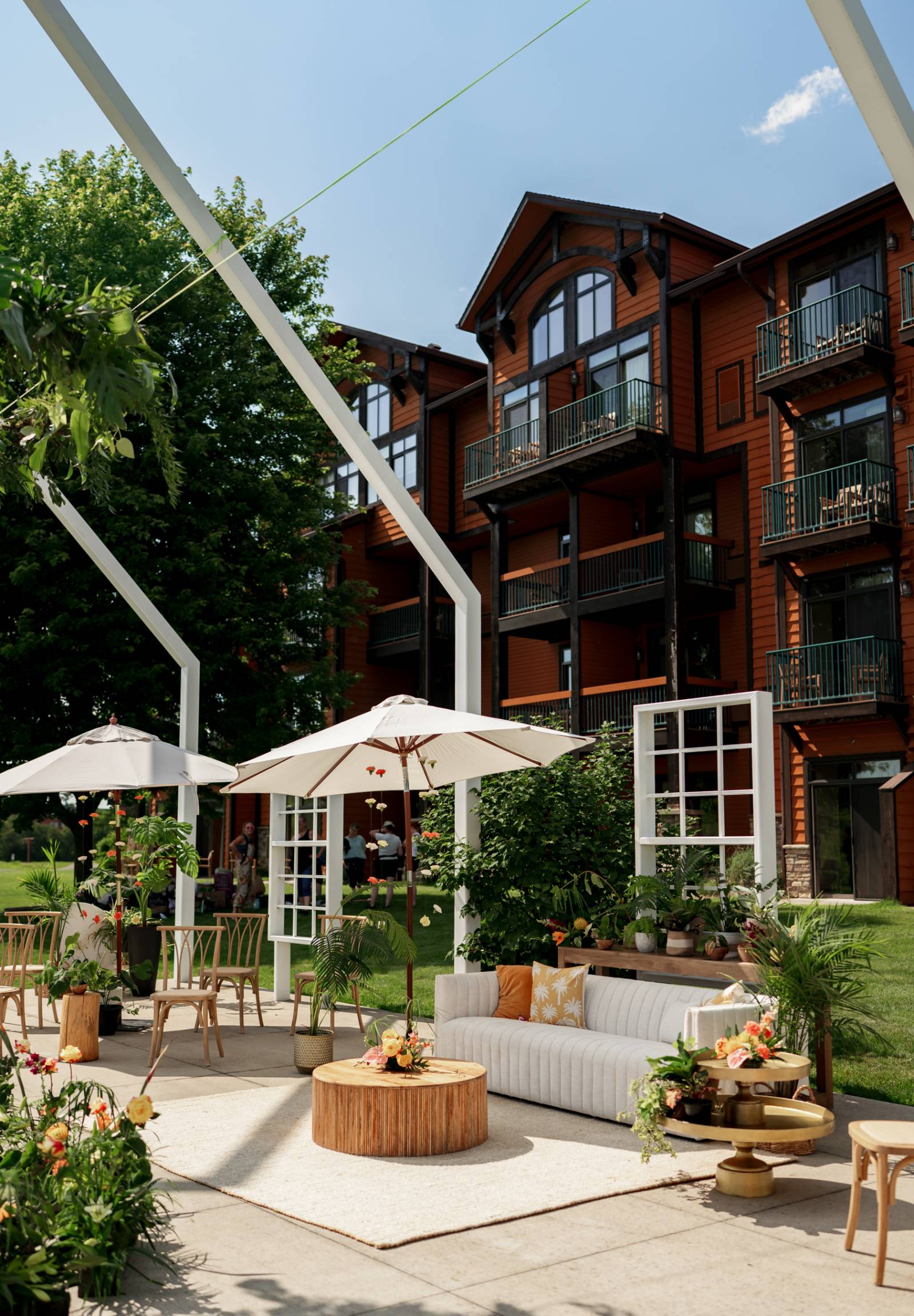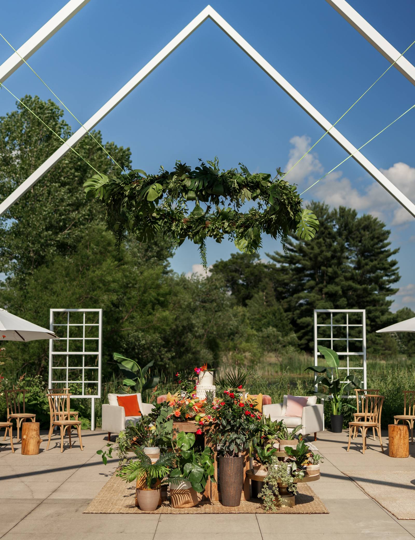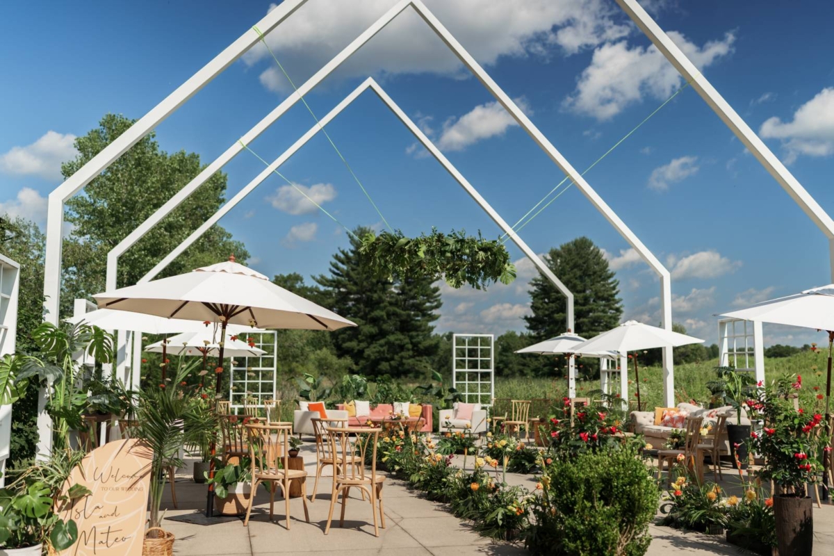 Located in the Wisconsin Dells, Chula Vista Resort offers many beautiful settings, indoors and out, for couples seeking a wedding vacation getaway right here in Wisconsin. As the name suggests, the Chapel on the Green is a modern outdoor design that offers breathtaking views of Coldwater Canyon Golf Course, making it the perfect choice for a tropical setup.