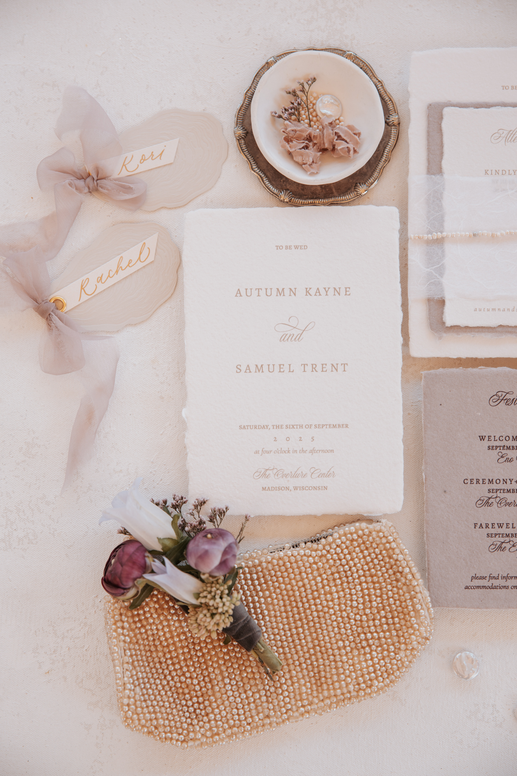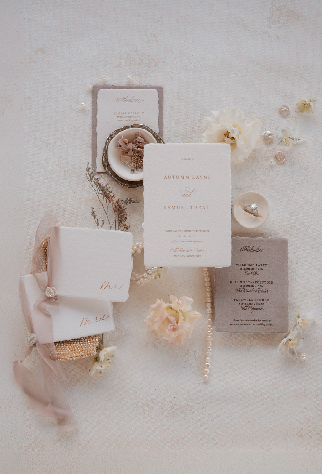 For centuries, pearls have captivated us with their blend of raw, natural beauty and timeless elegance, forming inside oysters as nature’s perfect hidden treasure. This harmony of organic luxury inspired a stunningly chic wedding design at the Overture Center in downtown Madison, Wisconsin, where warm neutrals, rich plum tones, and modern pearlescent details set the stage for a celebration of refined sophistication ready to inspire.