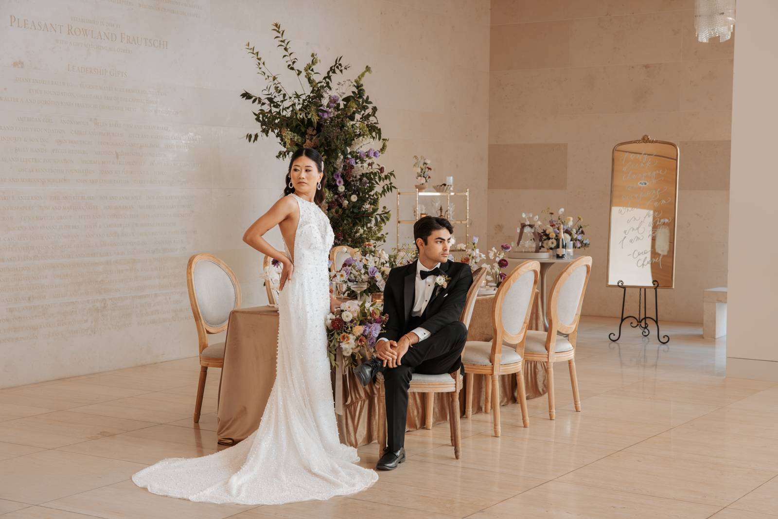 ertise in fine art wedding planning and meticulous organization ensured every element–from the florals to the decor–was thoughtfully curated and perfectly aligned with the theme. Her keen artistic eye transformed the Overture Center into an unforgettable setting, where luxe touches and contemporary elements came together in flawless harmony to create a truly elevated experience.