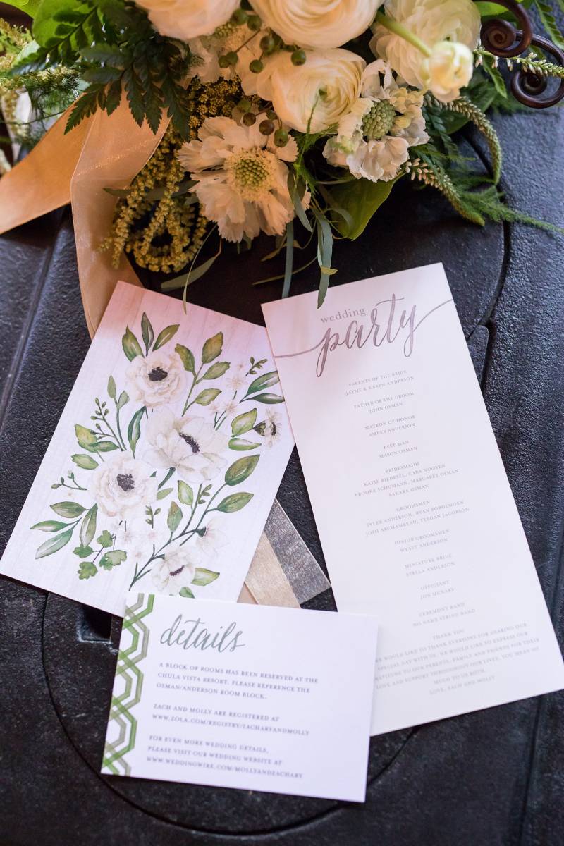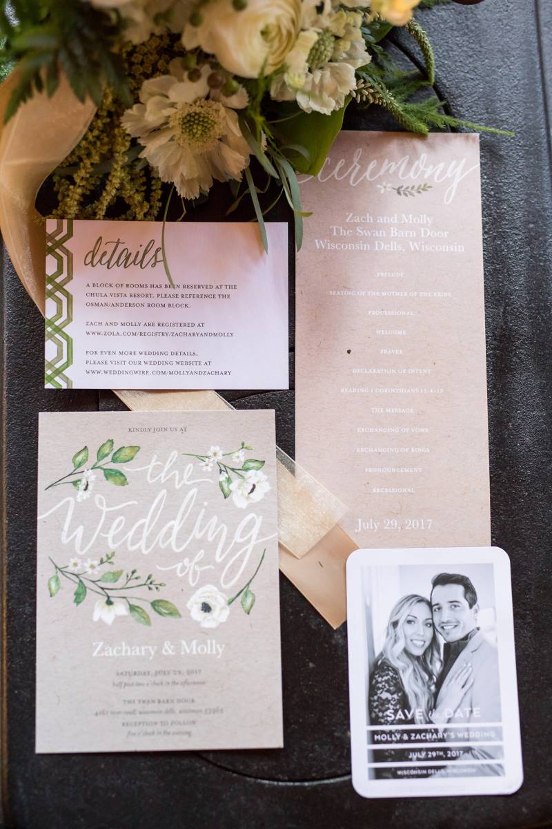 WERE THERE ANY PERSONAL TOUCHES OR DIY ELEMENTS? We had J. Henry & Sons whiskey out of Dane, WI make us small personalized whiskey bottles for our wedding favor. We had deer antlers on all the tables to tie in some of Zach’s interests and all of the antlers were found by his dad over the years at their land up north. My mom also made a special spice mixture for seasoning the dinners for each table, and since the whole family was on a wedding diet my mom also made my grandma’s famous chocolate chip cookies for everyone to indulge in after the reception! My bouquet also had a lace ribbon that my grandma made and the boutonnieres all had golf tees incorporated to symbolize something all the groomsmen really enjoy doing together. Also, our French Bulldog puppy Bogey, which you may remember from the proposal, made his debut at the wedding as a wedding present from Zach.