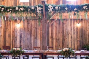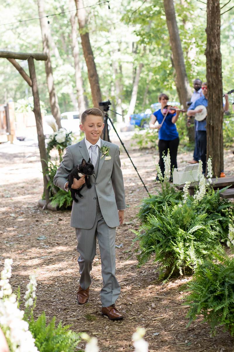 From the pampas grass ceremony installation (which we can’t get over) to the natural, wild blooms from Thompson’s Full Bloom, this is a perfectly imperfect barn celebration. Nestled in the woods at The Swan Barn Door, this fete gives an effortless boho vibe and a chic airy color palette of neutral tones with locally crafted bourbon wedding favors from, J. Henry & Sons. We love even more the sweetest wedding present a groom can give his new bride – a French Bulldog! What more could you ask for? See more in the gallery below from Happy Gnome Photography.