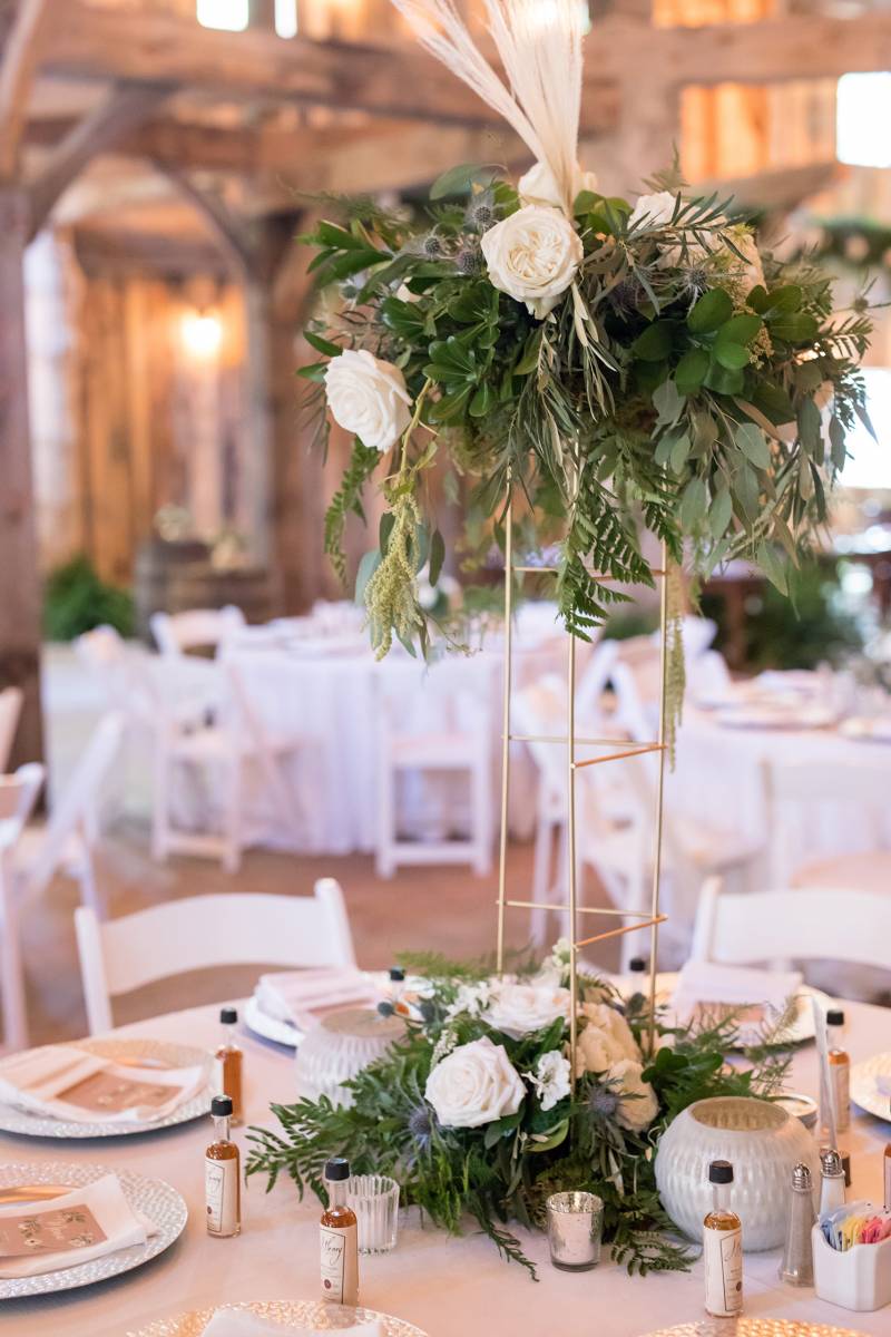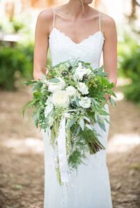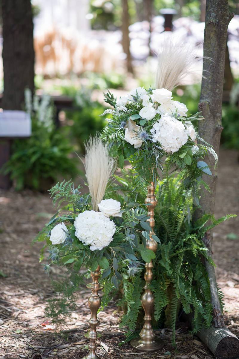 DESCRIBE YOUR WEDDING FLOWERS: Wild! I wanted a lot of greenery and white flowers but still remaining very natural and not perfect. Perfectly imperfect! We had ferns lining the aisles and a beautiful pampas&nb