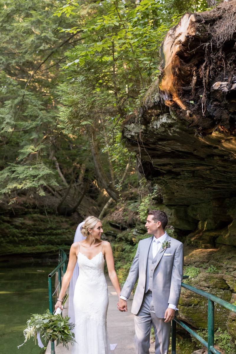 TELL US ABOUT YOUR DRESS: My mom, Zach’s sister, and I went shopping at Erika’s Bridal Couture in Neenah I was very fortunate to have a friend working there so the whole experience was really special! I knew I wanted a lace dress with some special details and I wanted to be comfortable! We all fell in love with an Enzoani mermaid style dress with a Chantilly lace overlay and Guipure lace underneath the straps had tiny little crystals with an illusion V-back. My cathedral length veil matched the straps with little crystals lining the veil.