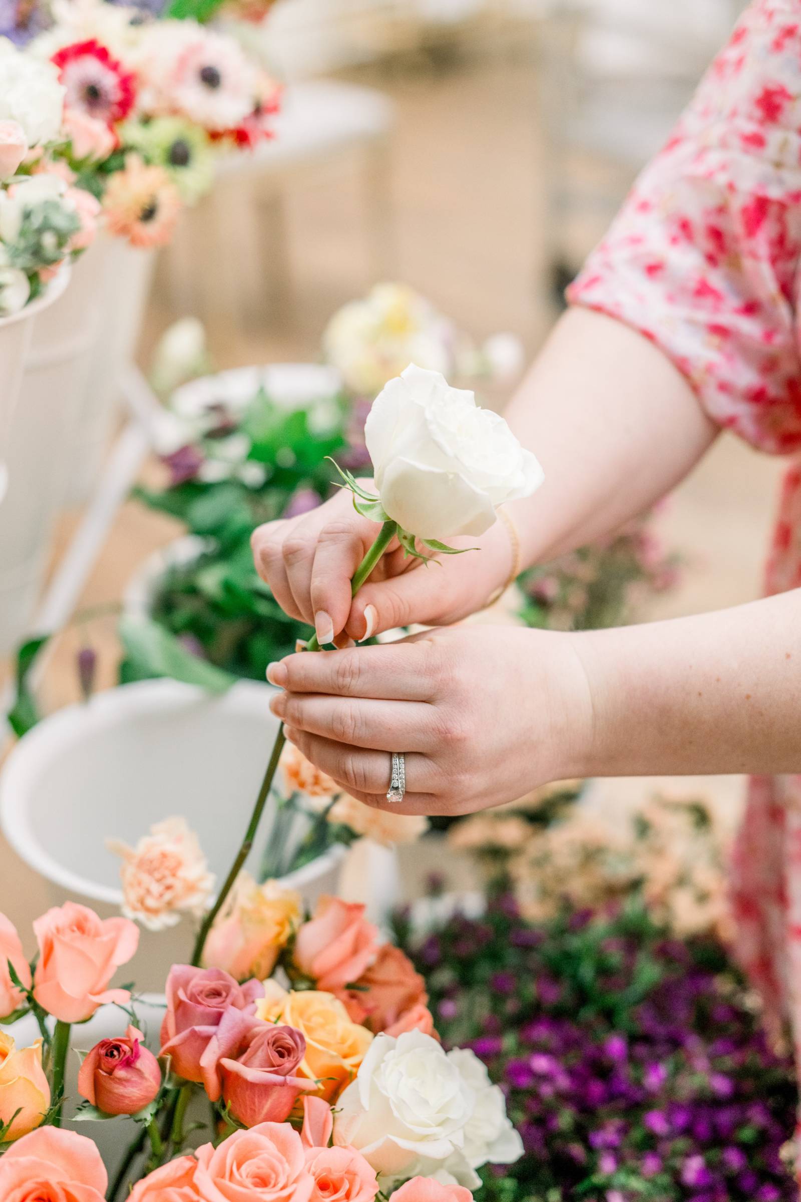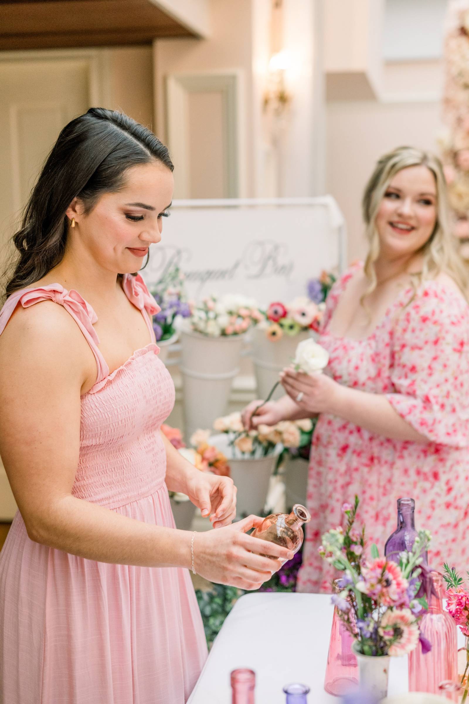 Is there anything more fun than building bouquets with your best friends? This dreamy bloom bar curated by Melody Rose Designs was the perfect activity for a floral-filled bridal shower and, in addition, offered a beautiful favor to take home!
