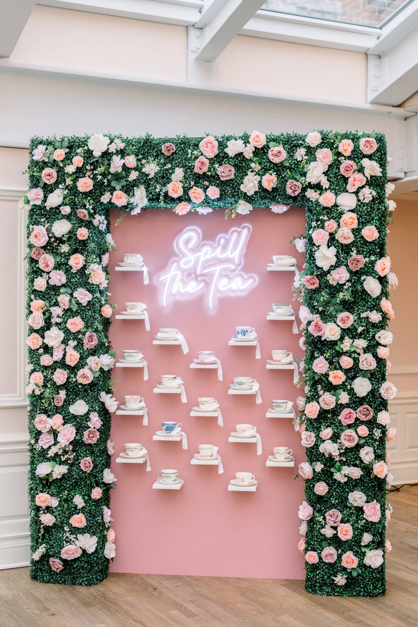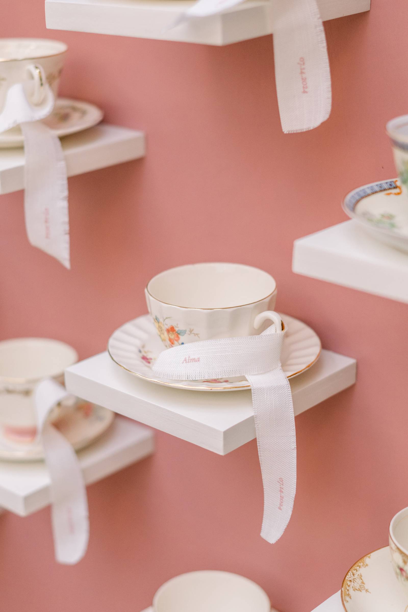Time for tea with the bride-to-be! This custom teacup wall created by Cedar & Spice made a fun, eye-catching, and engaging statement piece for each guest to take their teacup and find their seat for some refreshments.