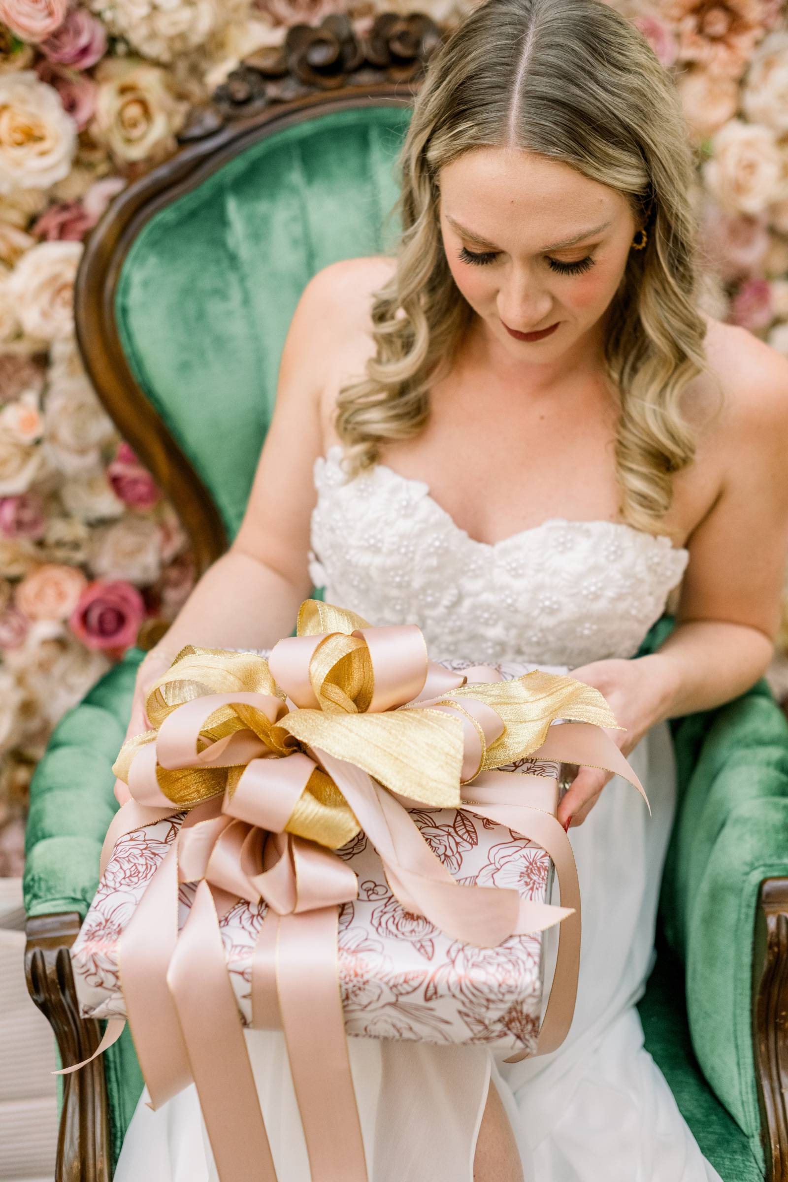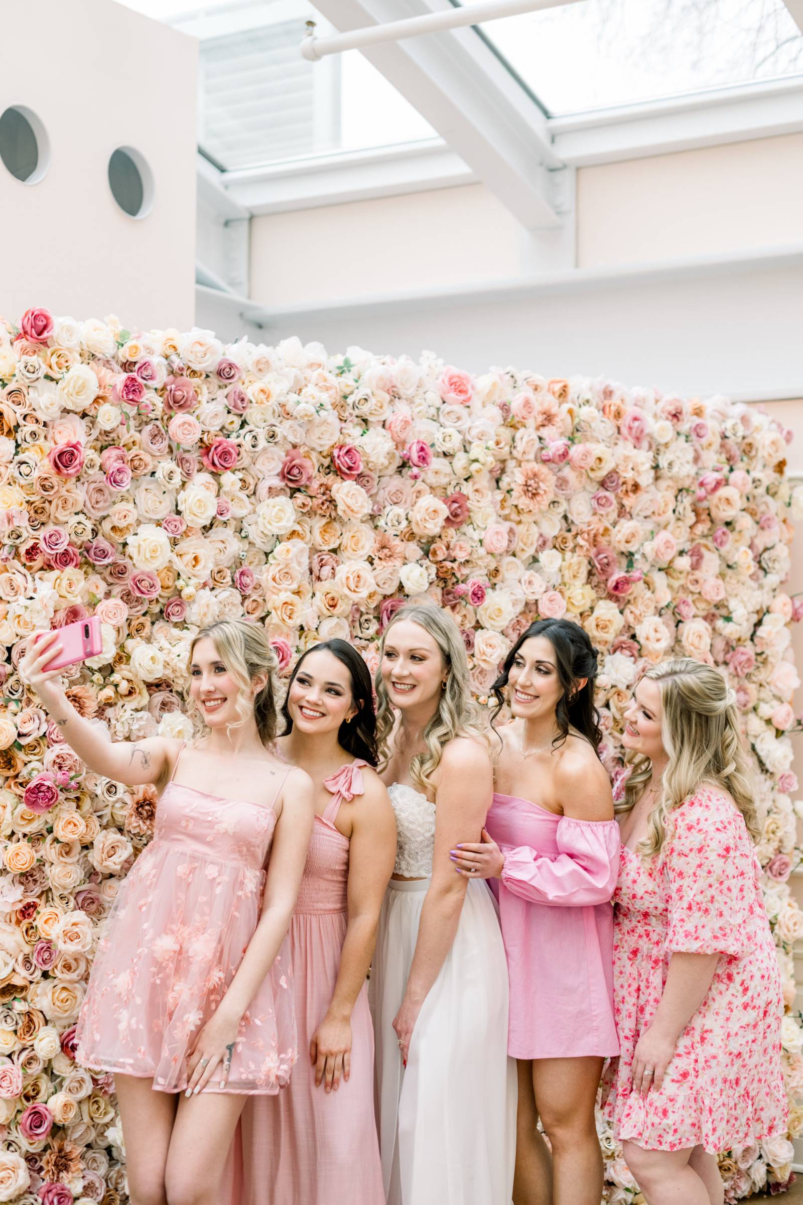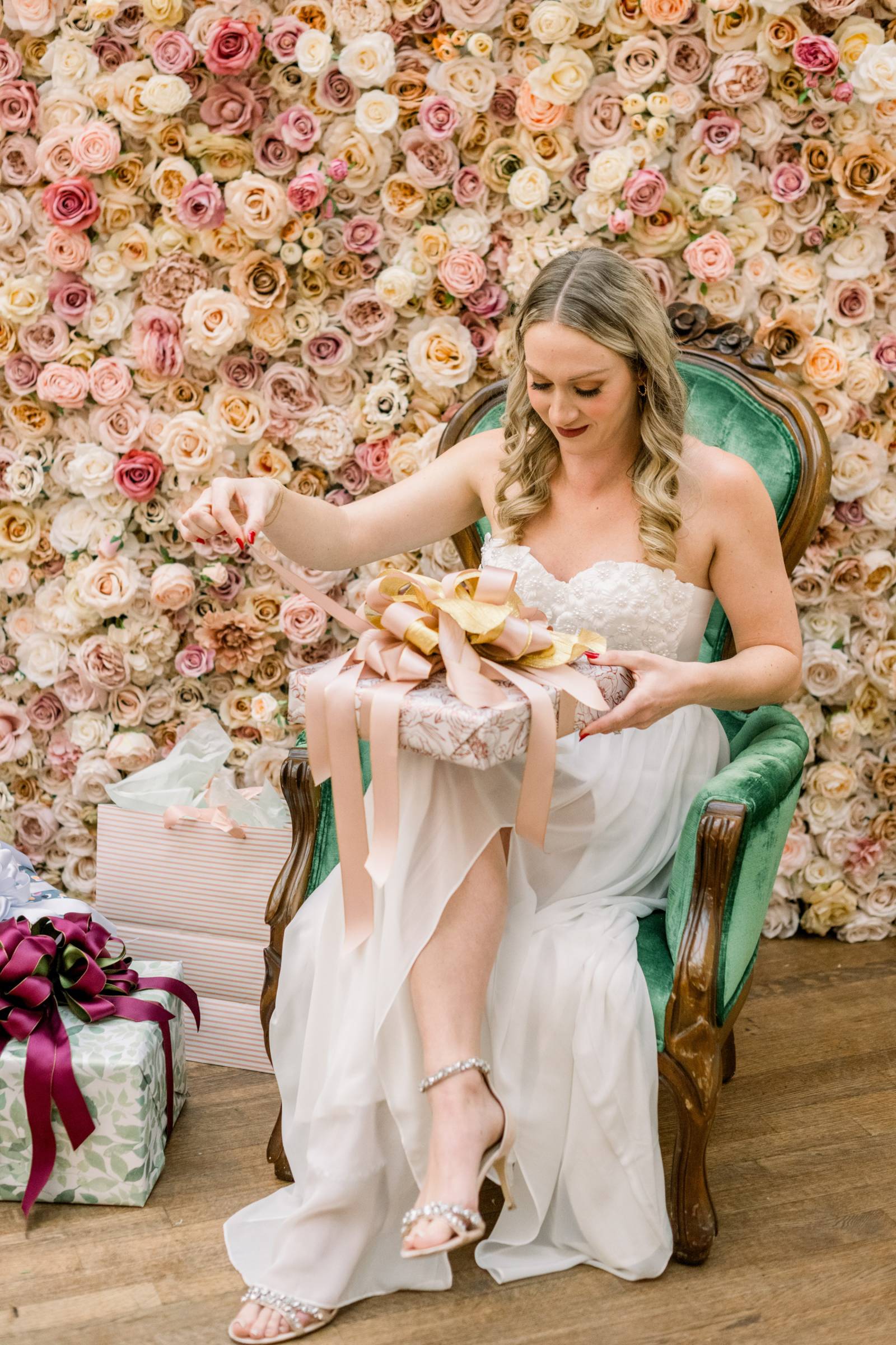 It wouldn’t be a bridal shower without showering the bride with gifts! Enchanted Wall Flowers creates beautiful, high-quality, and custom handmade flower walls and other statement pieces right here in Madison, Wisconsin, and this dreamy pink-toned wall served as the perfect gift-opening and photo-op backdrop for the festivities!