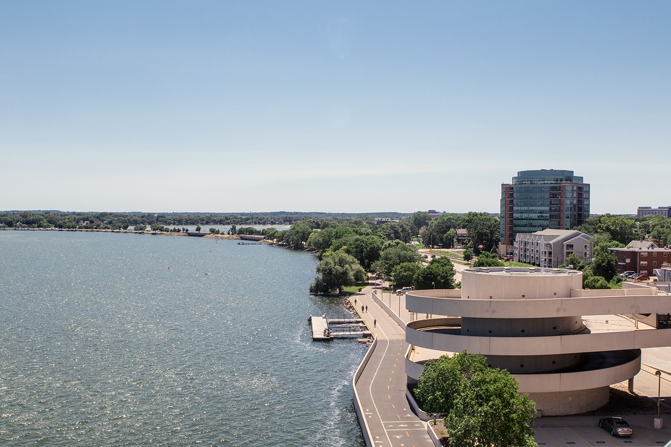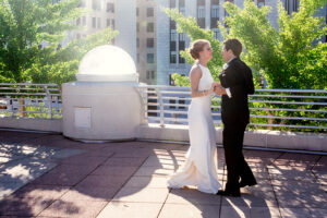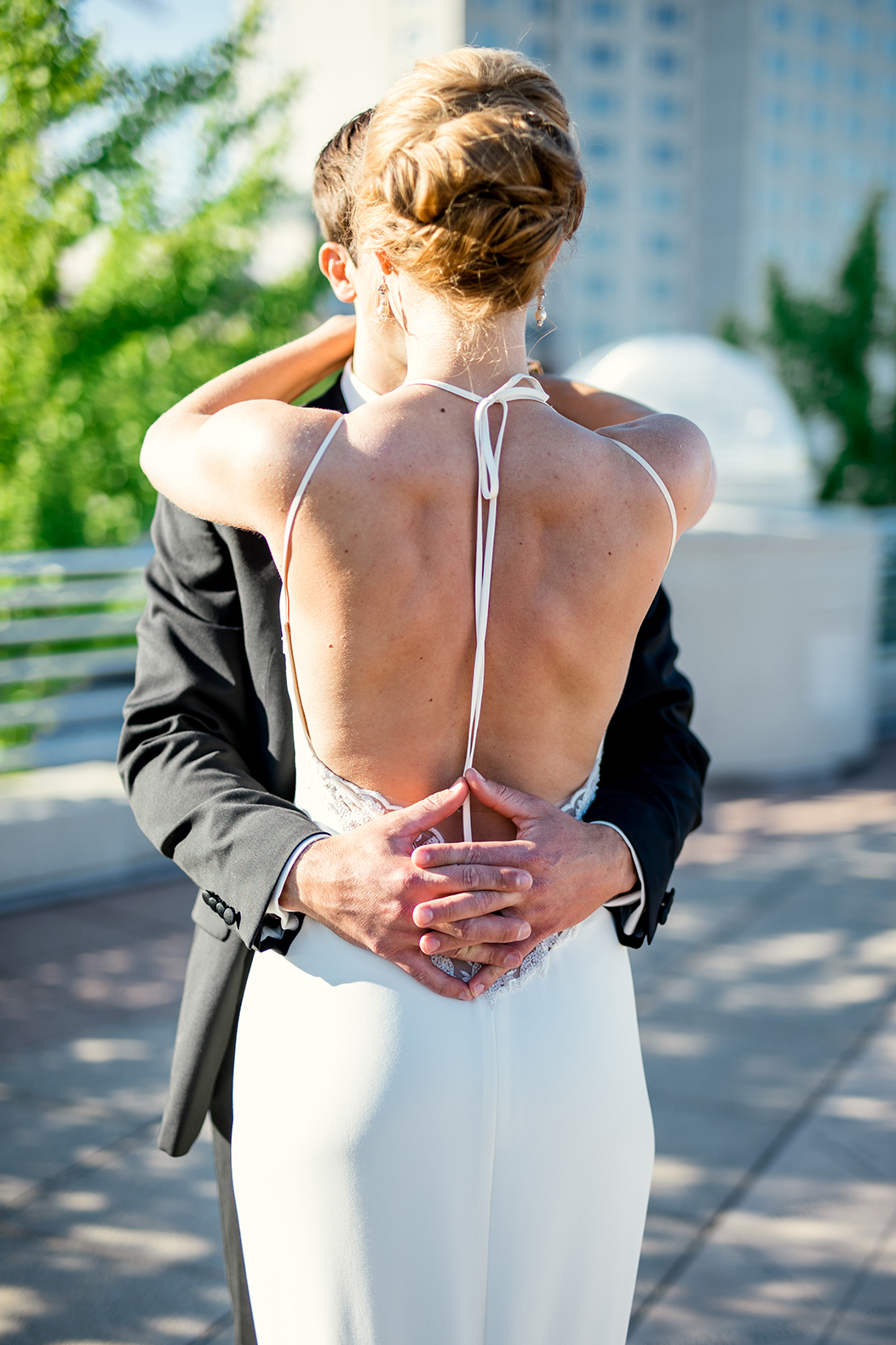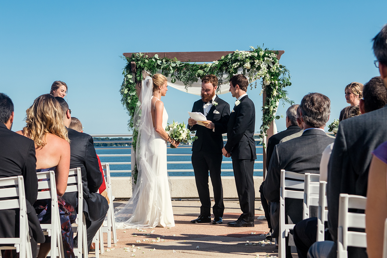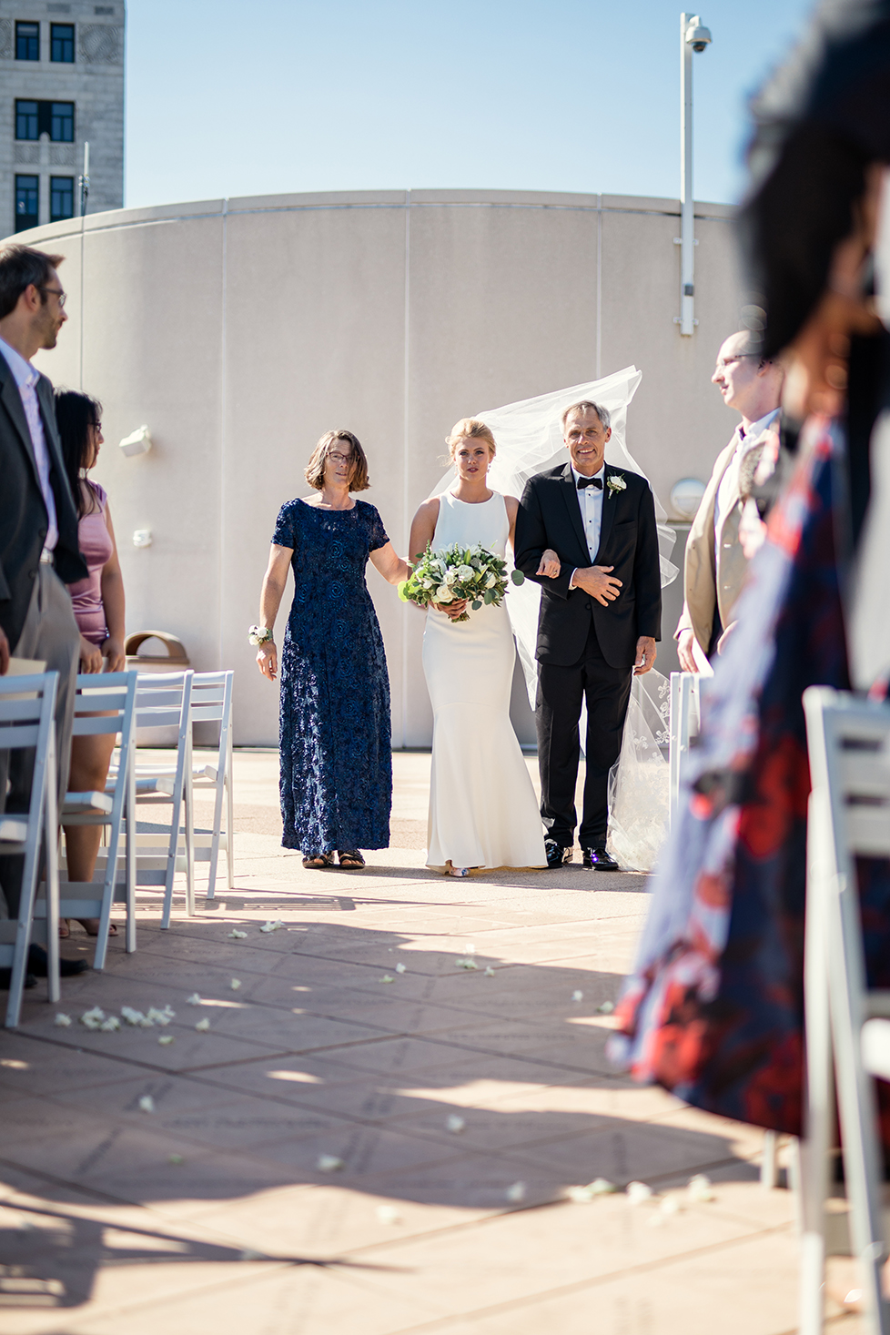 Peaceful and classic, shades of cream, ivory, and champagne repeatedly stand the test of time, especially when paired with soft greenery as showcased in this heavenly Madison wedding. Splendid views of Lake Monona were enjoyed from the rooftop ceremony at the Monona Terrace, with the bride and groom surrounded by family and friends, as well their beloved Labrador, who joined the wedding party as the ring bearer. Elaina and Nate offer great advice to other couples planning weddings. Be sure to read what their favorite moment of their wedding day was!