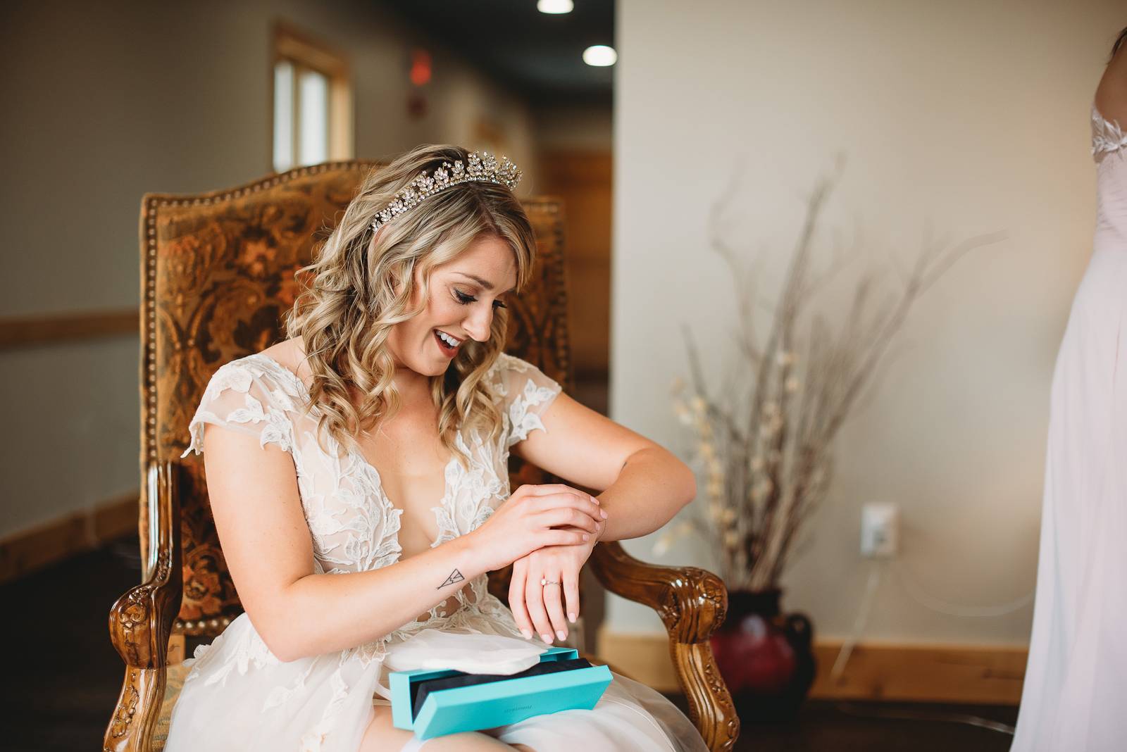 TELL US ABOUT FINDING YOUR ATTIRE: Finding our wedding outfits was an amazing experience. I went to a boutique in Galena, Illinois, called Love Theory Bridal. I had been looking for a dress from a line made in Europe, and Love Theory is one of the only places in the United States that carries this special line. I tried on the one dress they had from them, and I was hooked! It was perfect in every way. It made me look like the princess I feel like, and I could dance in it! It was the perfect mix of elegant and unique.