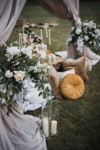 A cozy lounge tent provided an ideal retreat to unwind and soak in the enchanting atmosphere. Inside, guests could relax on plush seating, enjoy engaging conversations, and indulge in delectable EventCup desserts from Cowboy David’s Bakery, creating a charming, romantic escape right in the heart of the celebration!