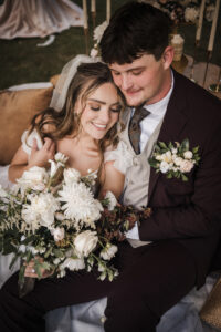 Featuring the creative talents of B-Style Floral & Gifts, Bobbi Peterson Photography, Food + Cake Wedding Films, LK Bridal Studio, Cowboy David’s Bakery, Bridal Boutique, Men’s Wearhouse, Beta Blue Beauty, and Event Essentials, step into a world of enchantment, charm, and inspiration below!