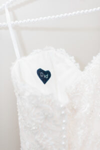 My favorite personal touch, however, was the little blue heart that I had sewn inside the chest part of my dress embroidered with the word Dad. This little blue heart was from the fabric of one of my dad’s favorite shirts. My dad passed away in 2013, and I wanted him with me on my wedding day.