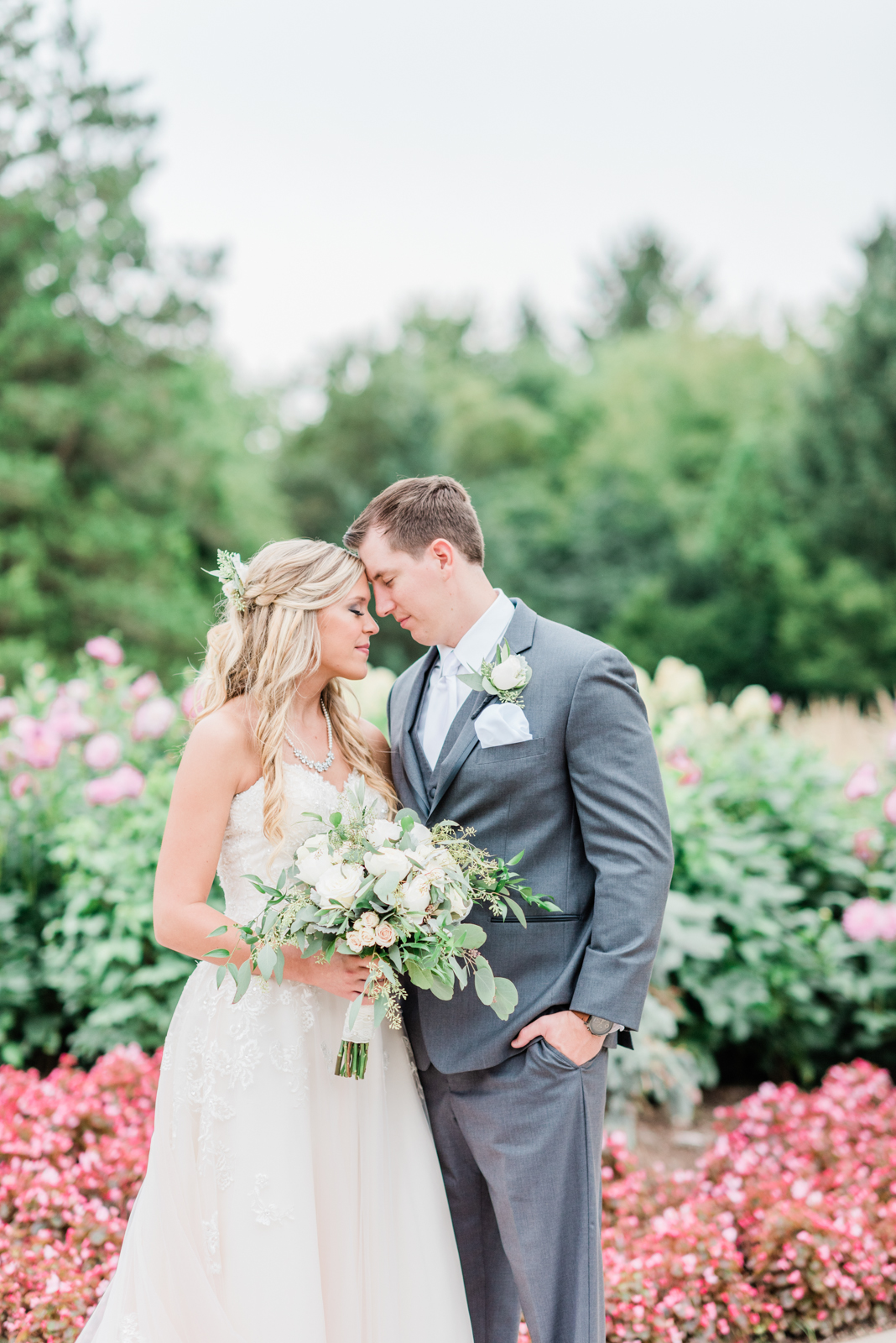 DESCRIBE YOUR WEDDING FLOWERS: Dusty Miller, Eucalyptus, Garden Roses, and traditional roses.