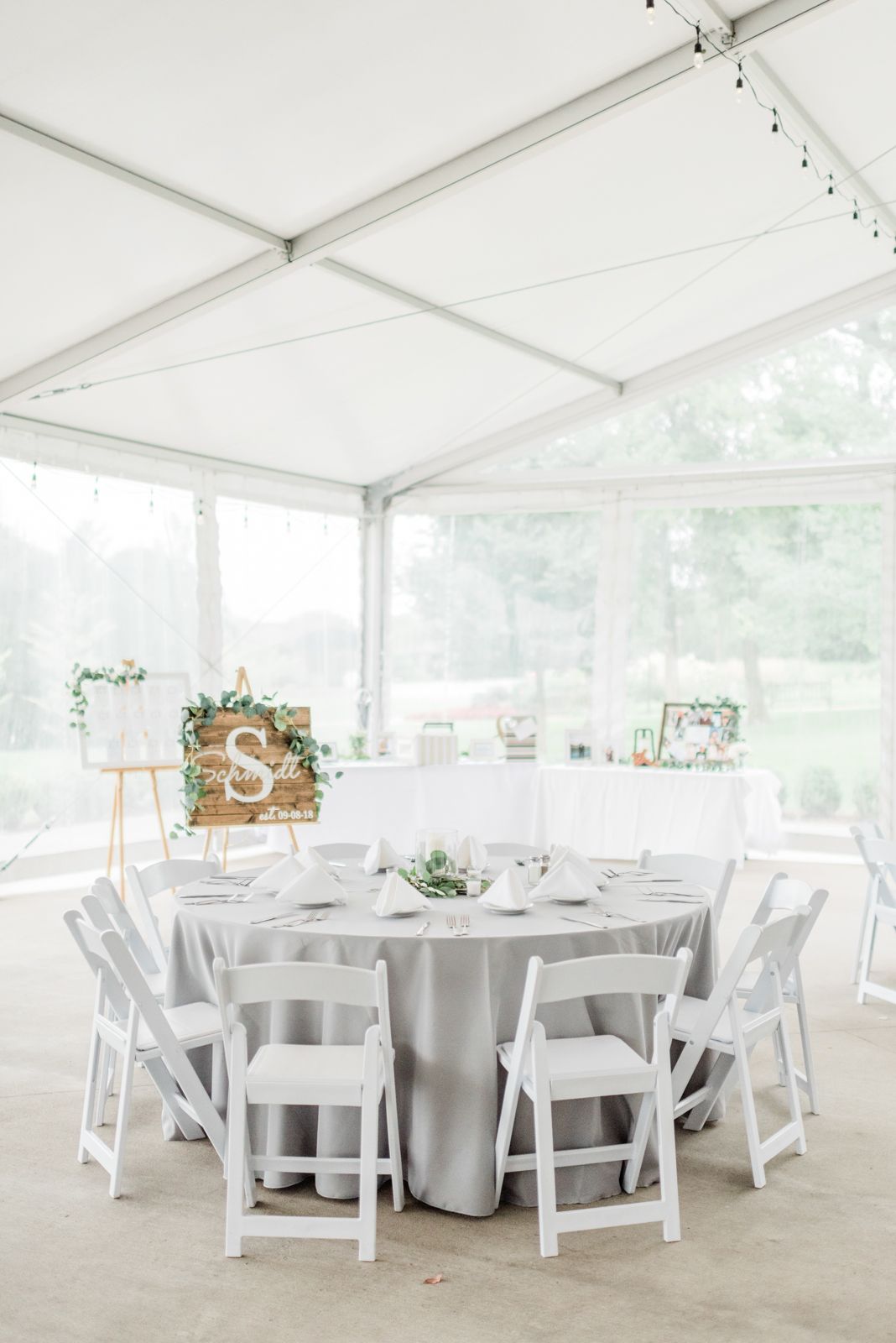 DID YOU USE ANY SPECIALTY CHAIRS, LINENS, CHARGERS, GLASSWARE OR DINNERWARE? My venue didn’t offer linens, so I had to find my own. I knew I wanted lighter gray floor length tablecloths and pops of sparkle which went on the unity table and the sweetheart table.