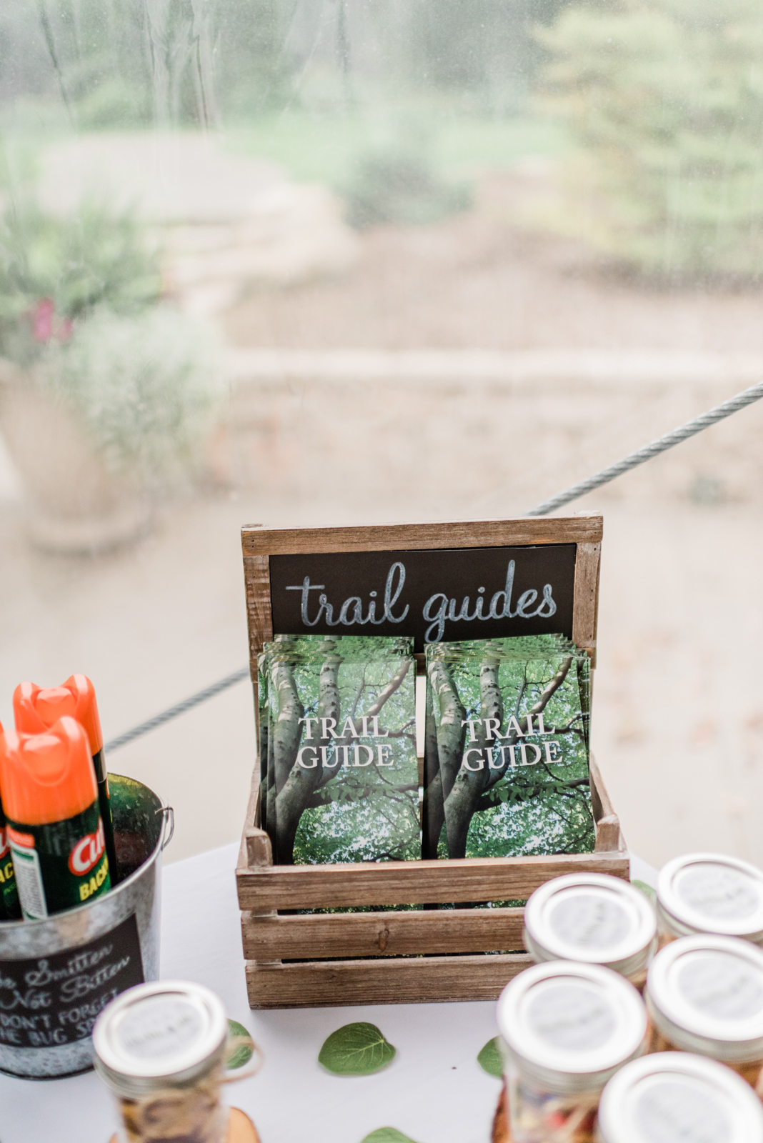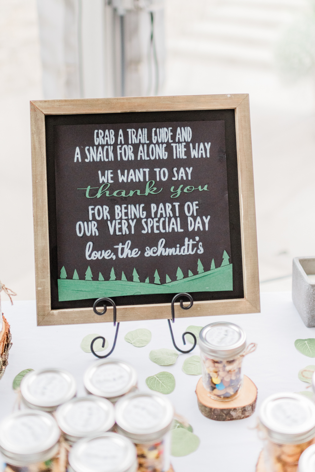 WERE THERE ANY PERSONAL TOUCHES OR DIY ELEMENTS? Almost every detail that I had was homemade via a Cricut Machine. Lance handmade the wooden arrow directional signs, and I created the descriptions for them. A bridesmaid and I made the table numbers, programs, the labels on the jars for the favors, the welcome window sign, the favors sign, the welcome sign to the reception, seating arrangement lists, etc. Also, a friend of my mine made our bag sets. My mother-in-law made the robes for getting ready and made the bags for the bag set. I also had a friend’s dad cut the wood slices for the favor display.