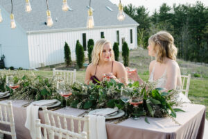 From the lush landscaping, two stunning elegant rustic barns to a beautiful garden appeal, every inch of this romantic garden wedding styled shoot is pure perfection at Madison wedding venue, Fields Reserve. Enlisted with a talented team of vendors coordinated by Relax Event Planning, Azena Photography behind the lens, florals by Daffodil Parker, stationery from Sugar Pear Design, gowns from Blushing Willow Bridal Boutique and cafe lighting for that extra added ambience by Chance Productions. Get ready to fall in love with this wedding inspo below for your very own soiree.