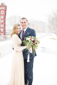 Grab a blanket, a cup of hot chocolate, and cozy up, because while winter is still here, we’re featuring a snowy, romantic and intimate styled elopement shoot on the blog for you to snag all kinds of inspiration from. Coordinated and photographed by Kuffel Photography, this winter day at the Madison Museum of Contemporary Art brings a classic, timeless, and romantic vibe featuring local vendors like A La Crate, and many others. Snuggle up and enjoy all of the beauty and details of this gorgeous, snowy Madison day.